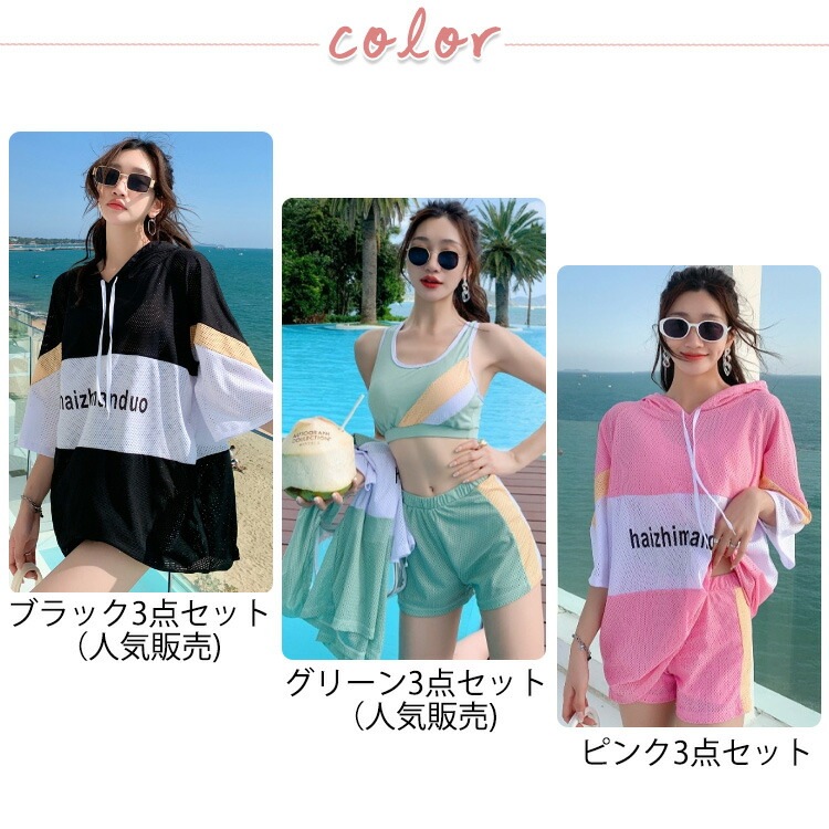 カラー: ブラック3点セット(人気販売) グリーン3点セット(人気販売) ピンク3点セット