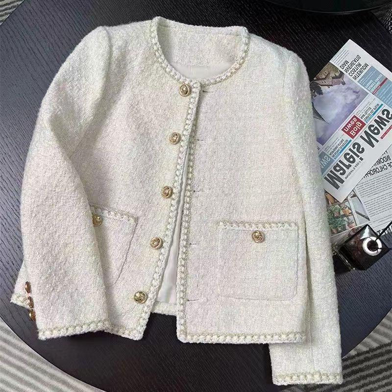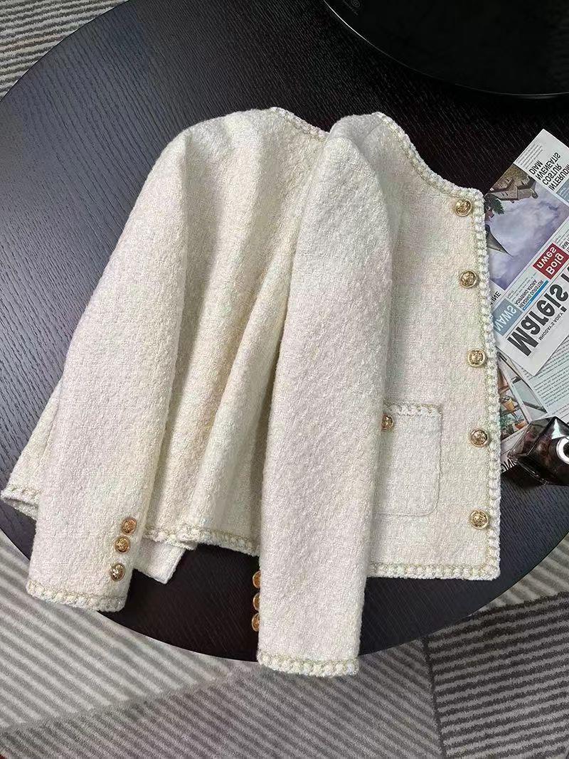 ジャケット 人気 冬アウター 春秋新作韓国 ベージュフレンチショートスタイル小さな香りエレガントレディースツイード女性 テーラードジャケット