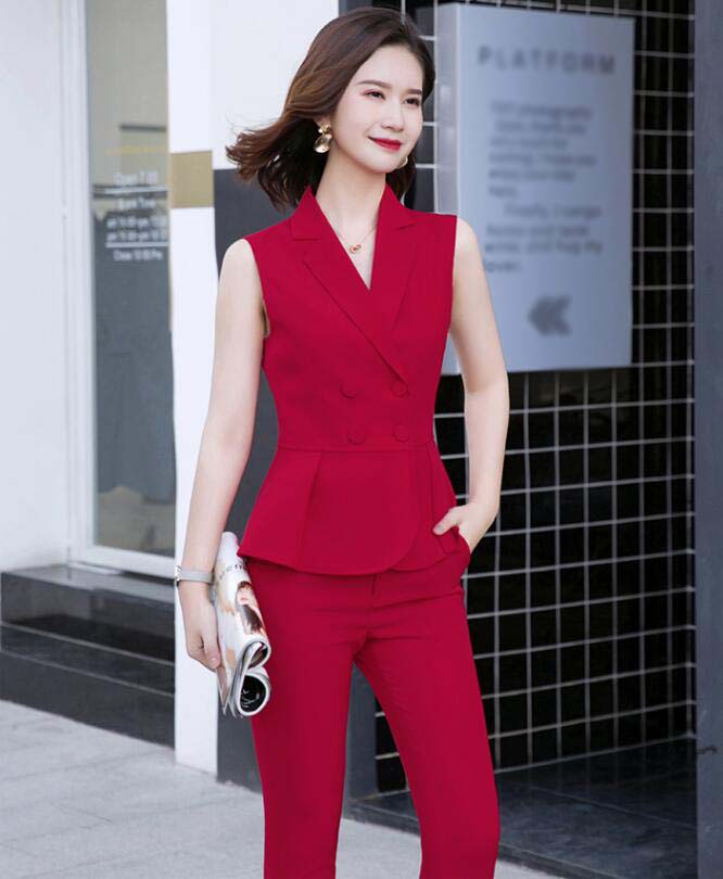 2点セット パンツスーツ レディース スーツ ビジネススーツ 袖なしジャケット 九分丈パンツ リクルート 通勤 OL ママスーツ 母親 卒園式 入園式 卒業式 お宮参り 七五三 セットアップ スーツセ