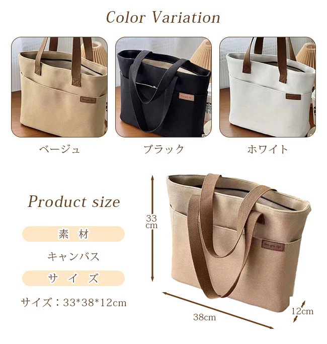 トートバッグ キャンバス ショルダーバッグ レディース メンズ 大容量 無地 キャンパストート 帆布バッグ 通勤 通学 トートバッグ