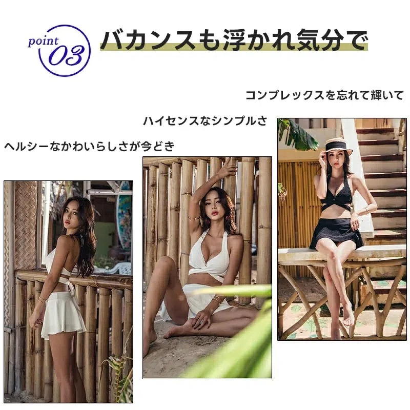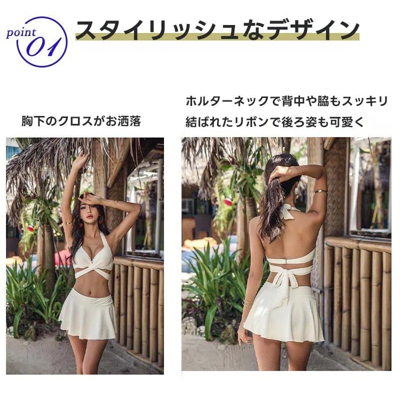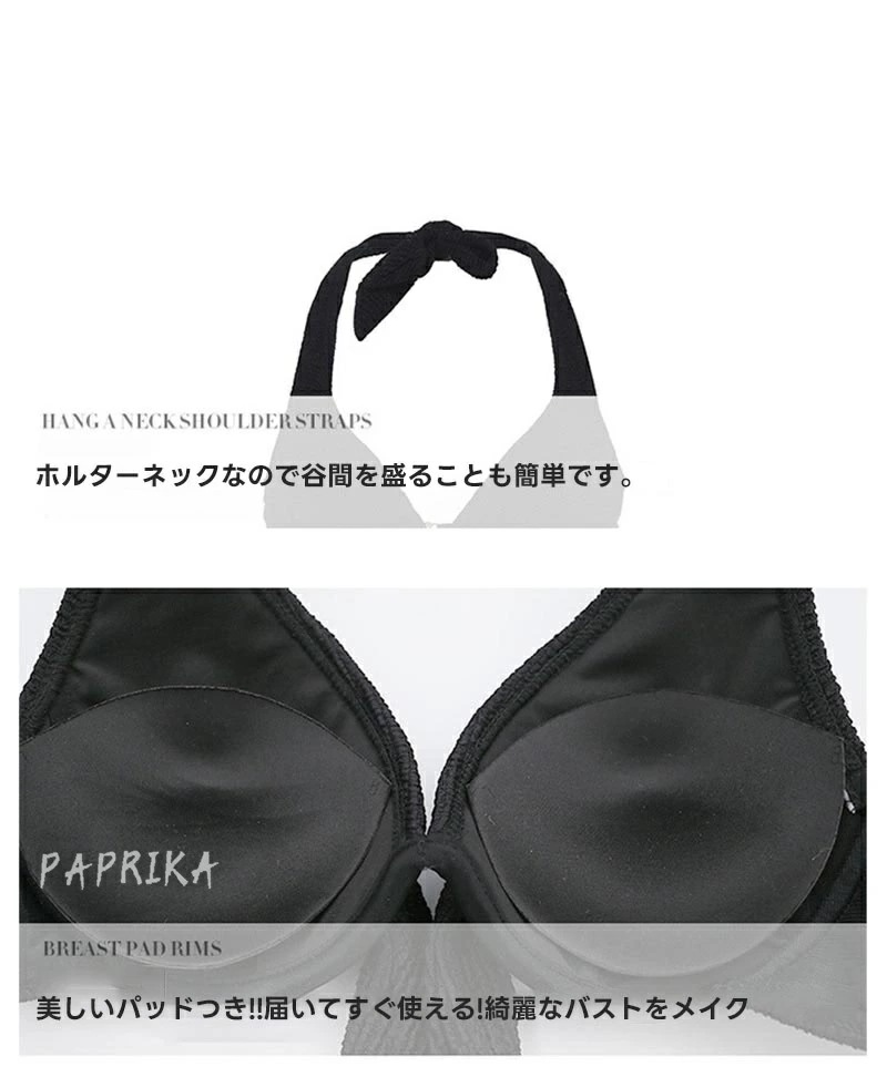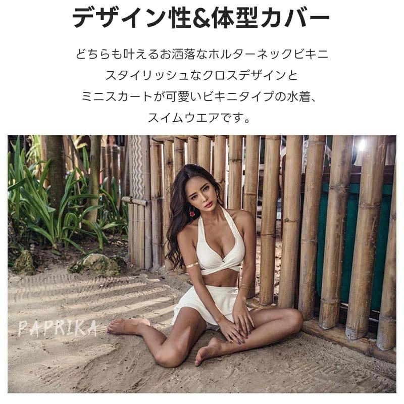水着 盛れる ビキニ スカート セクシー レディース 小胸 谷間 クロスデザイン 2点セット みずぎ パッド付き ワイヤー入り Vネック キャミソール ホルターネック 美バスト カシュクール スイムウ
