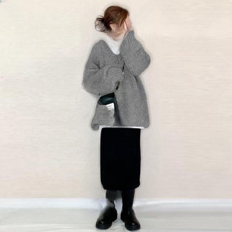 日系 大きめサイズ レディース 秋 冬 ニットセットアップ 体型カバー セーター トップス ロングスカート 二点セット 着痩せ セーター+スカート 秋冬 百掛け レディースファ