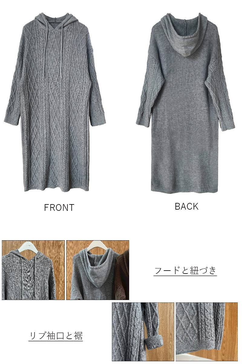 ニットワンピース レディース ワンピース ケーブル編み ロング ロングワンピース フードづき ニット 長袖 セーター ロング丈 膝丈 ニットワンピ マキシ丈 上品 シンプル ゆったり 秋冬 あったか