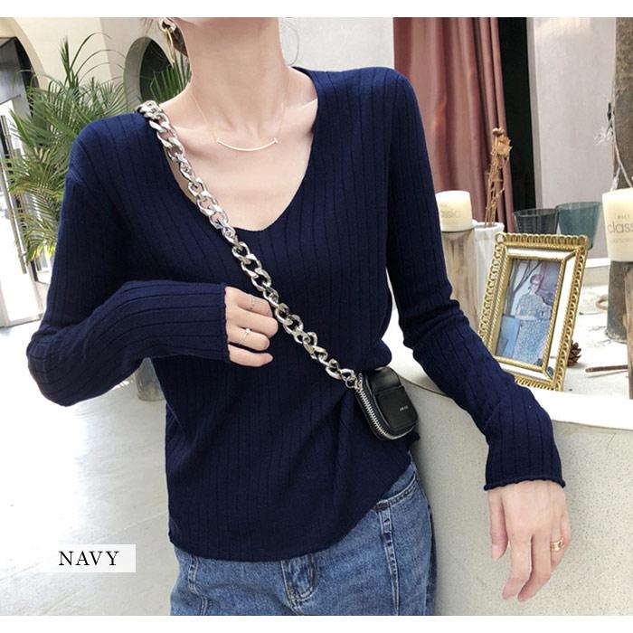ニット レディース トップス 春 無地 Vネック 黒 長袖 セーター ブラック ホワイト グレー ベージュ パープル ブルー カーキ ネイビー