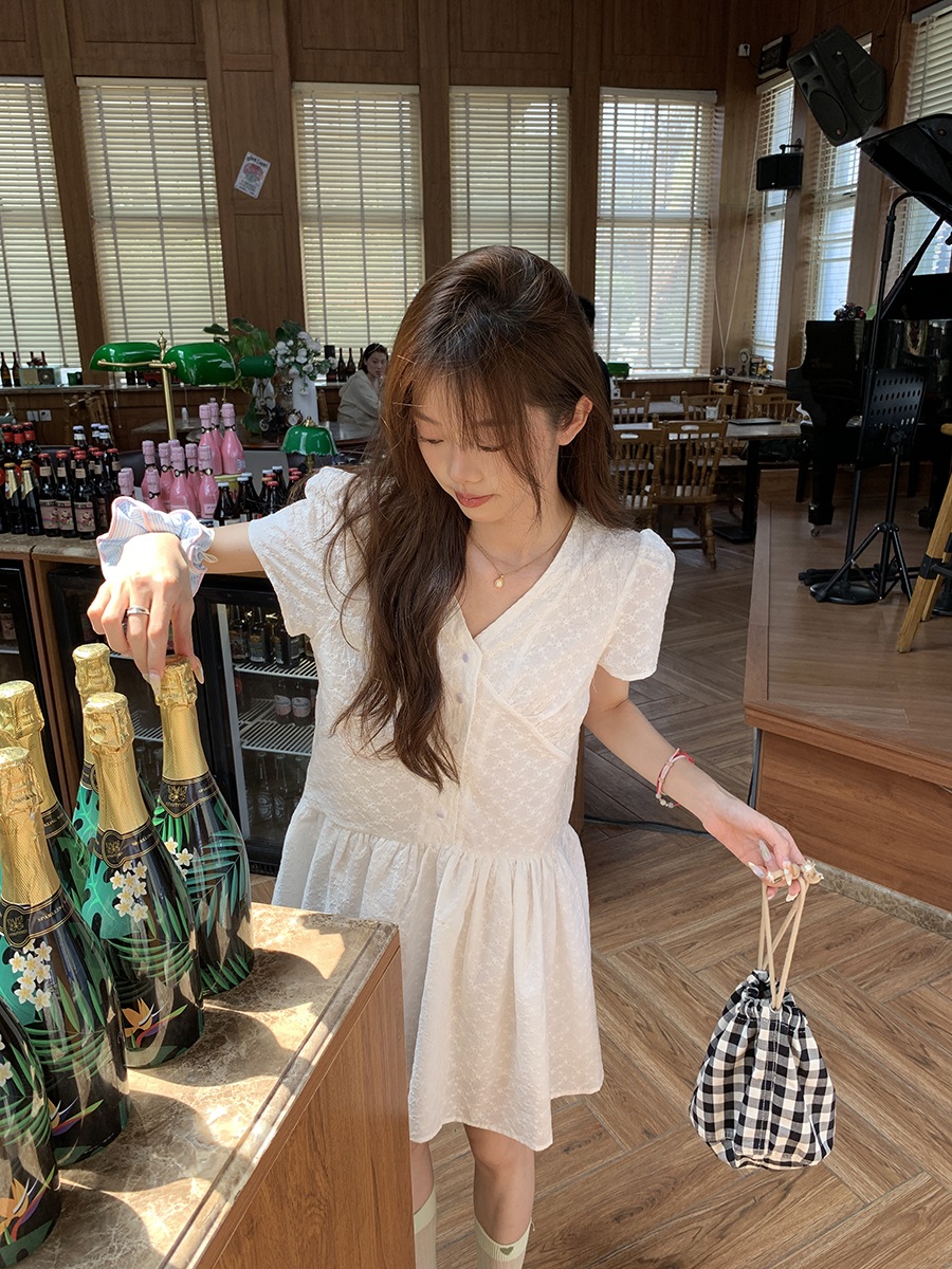 初恋感年齢軽減刺繍レースウエスト痩身vネック気質ドレスレディース2024ショートスカート その他 スカート