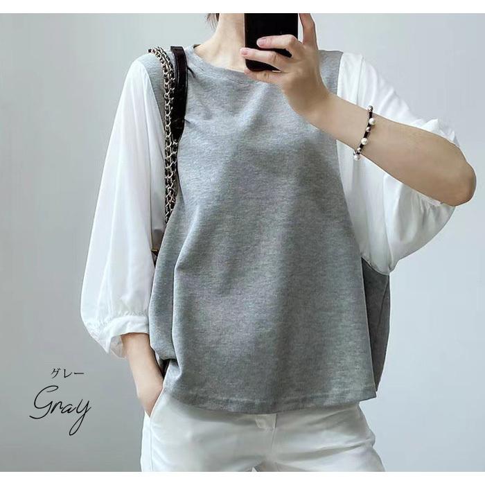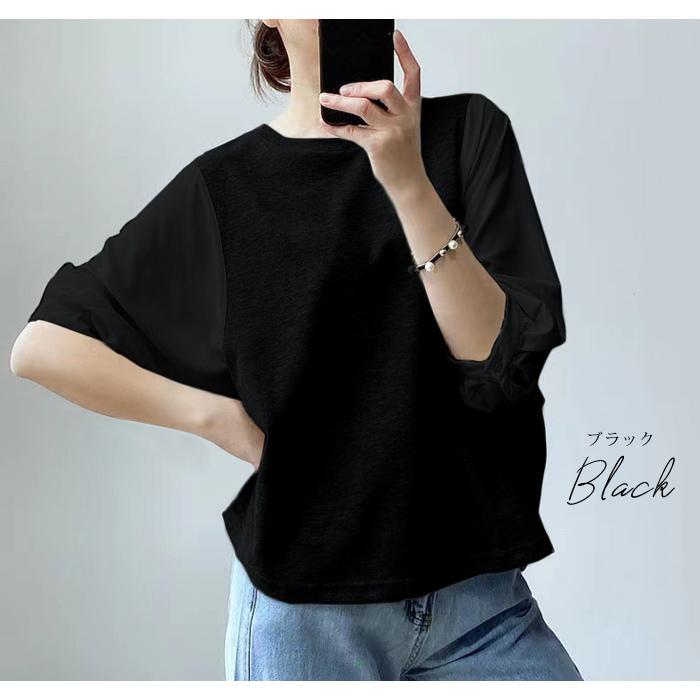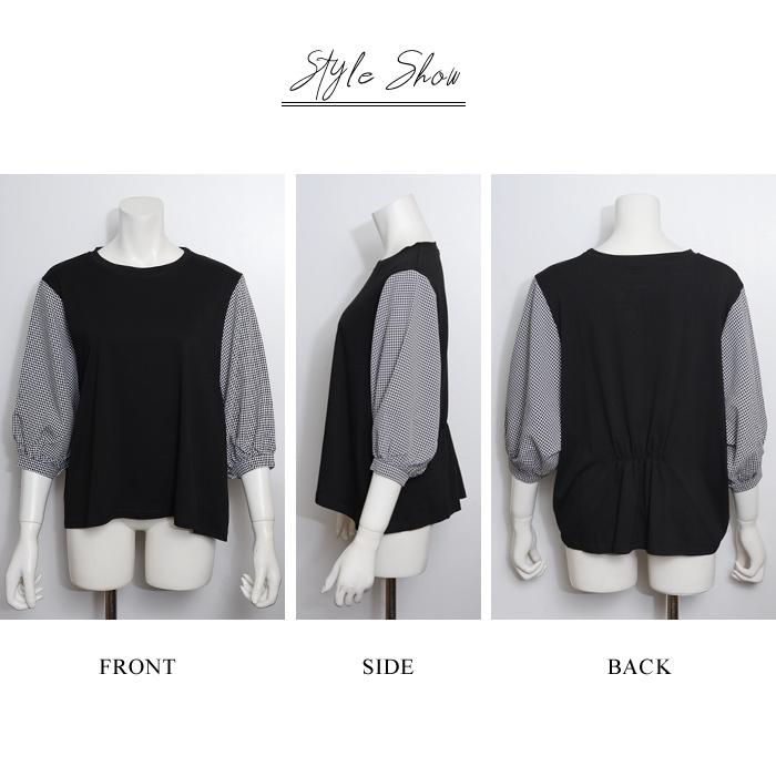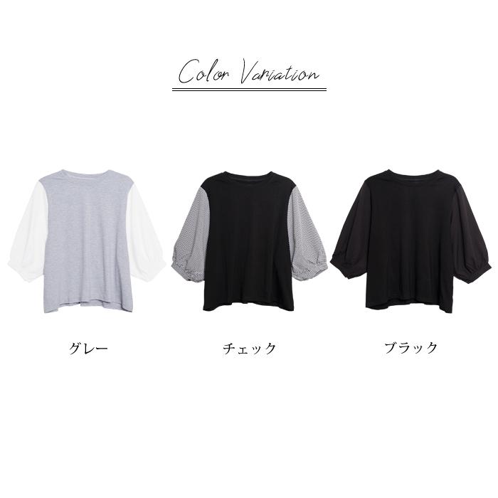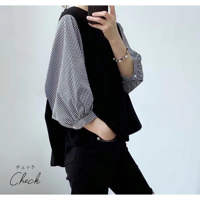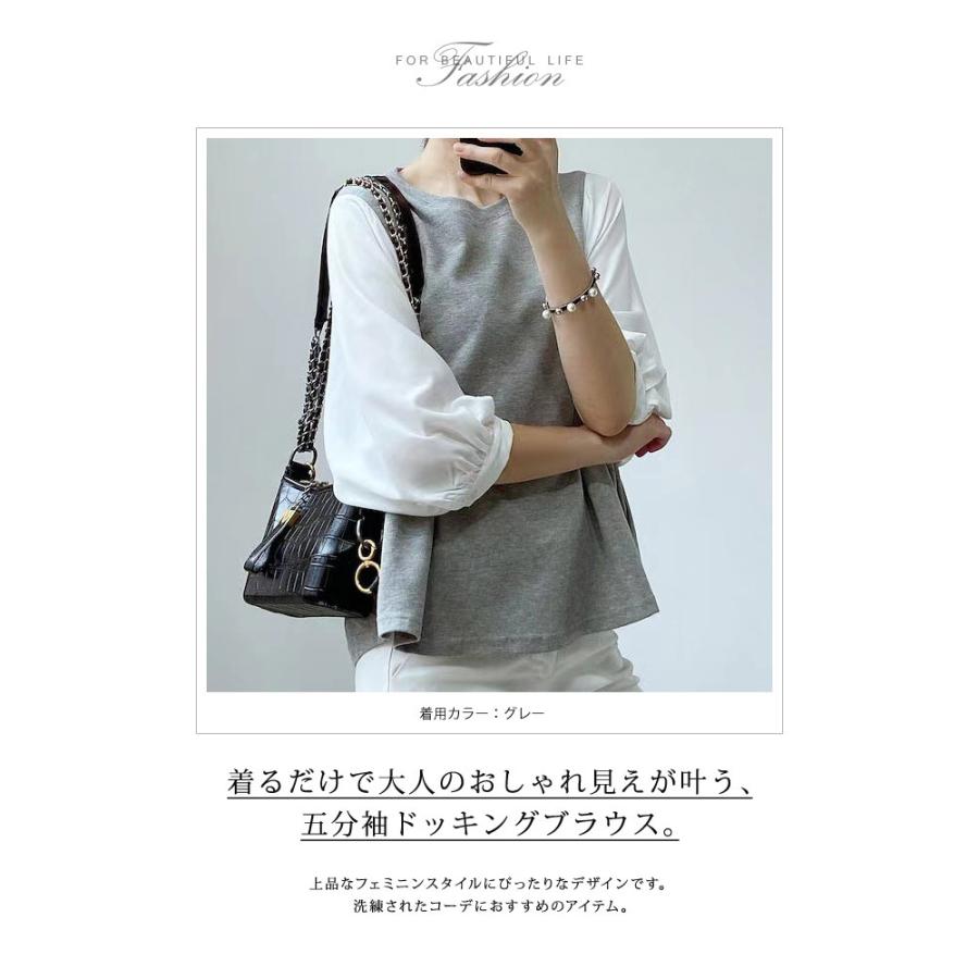 ブラウス レディース 春 夏 春夏 黒 シャツ ドッキング 5分袖 グレー ブラック チェック ドルマン トップス 半袖 チュニック 無地 20代 30代 40代