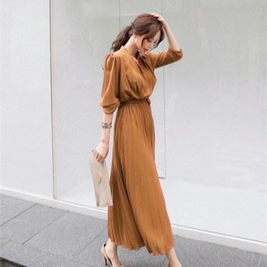 新色追加 レディース ワンピース プリーツワンピース 秋ワンピ ロング ワンピース ウエストベルト付き フレンチスリーブ 切り替え ふんわり きれいめ 大人 可愛い 通