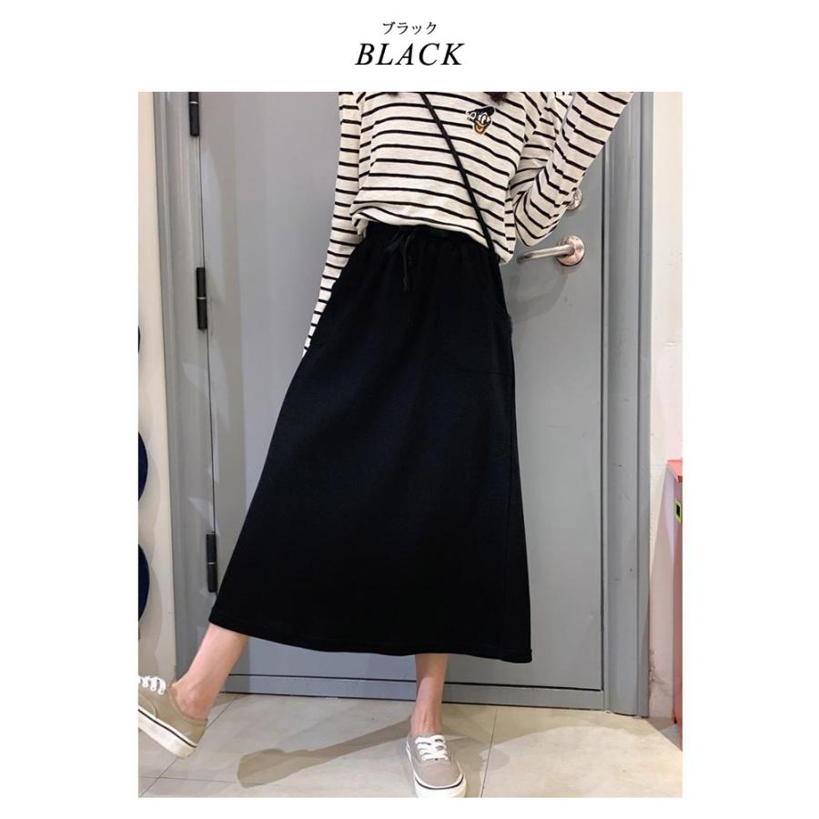 スカート レディースロング 春 黒 スウェットスカート ウエストゴム ブラック グレー ロング フレアスカート ミモレ ミディアムスカート
