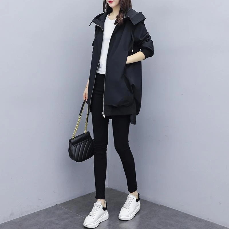 春季アウター フード付きトレンチコート レディース 防風ジャケット 気質通勤トップス 大きいサイズ ゆったりカジュアル軽量 韓国ファッション