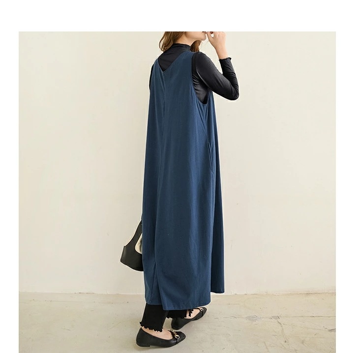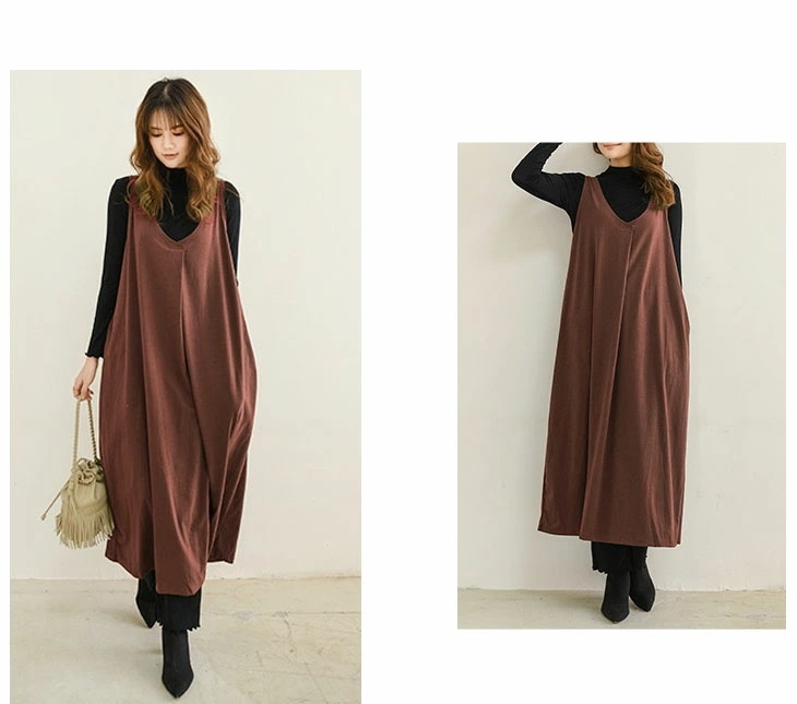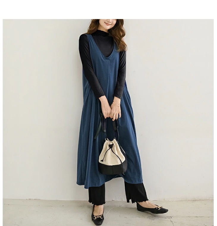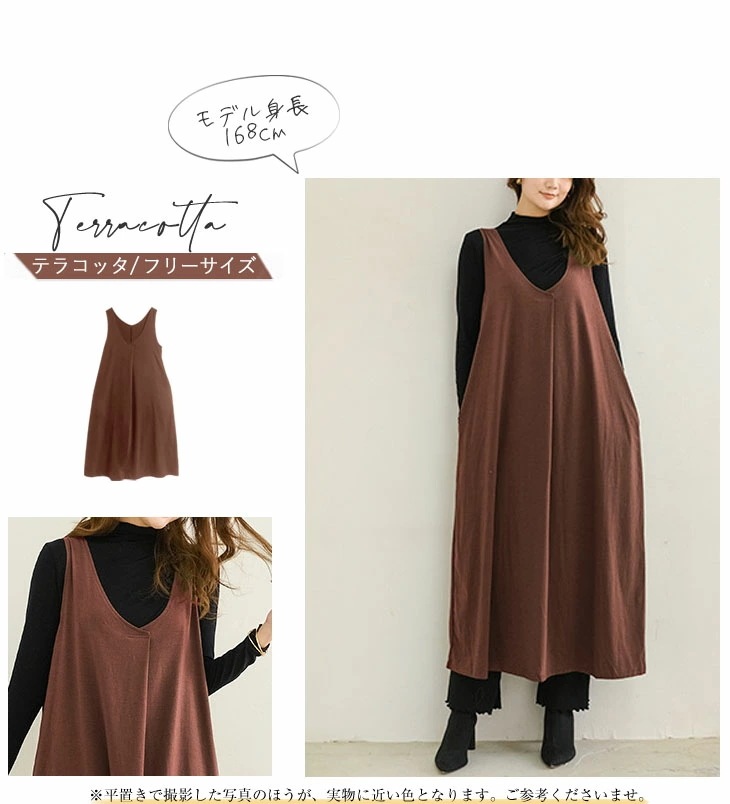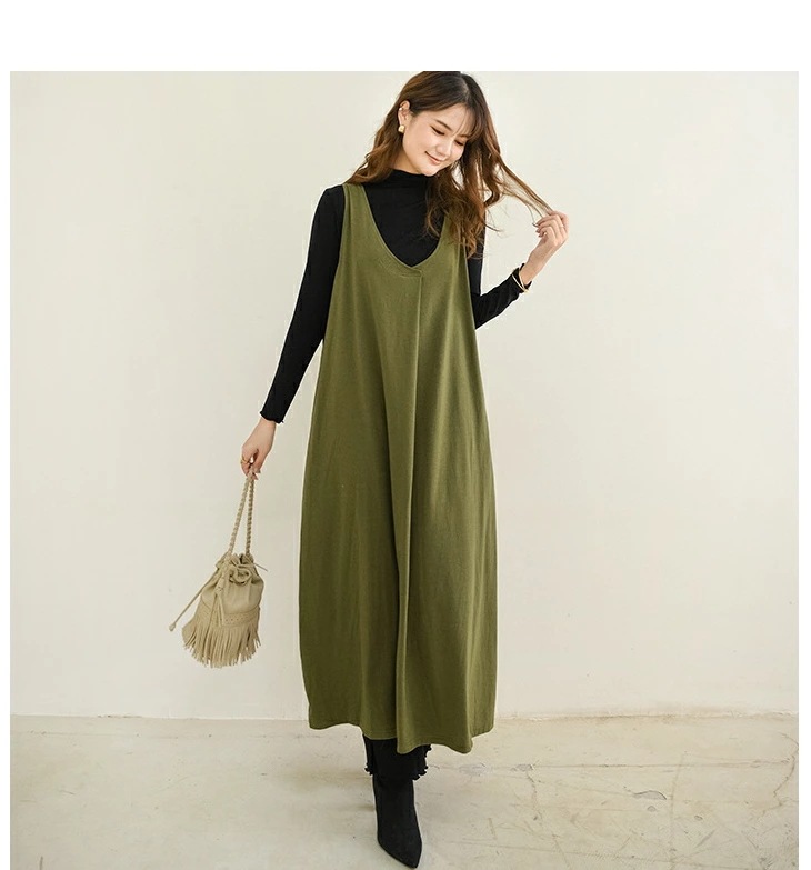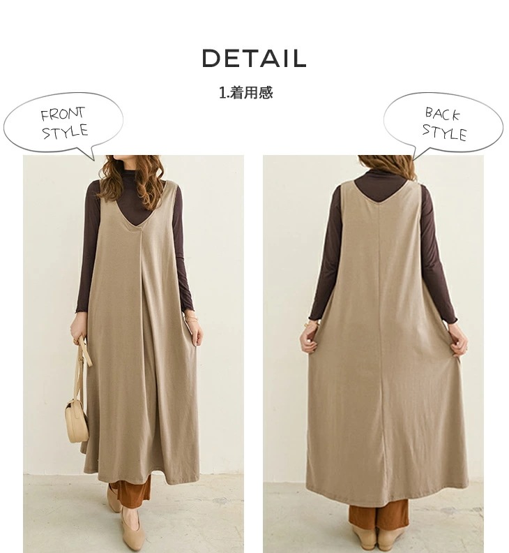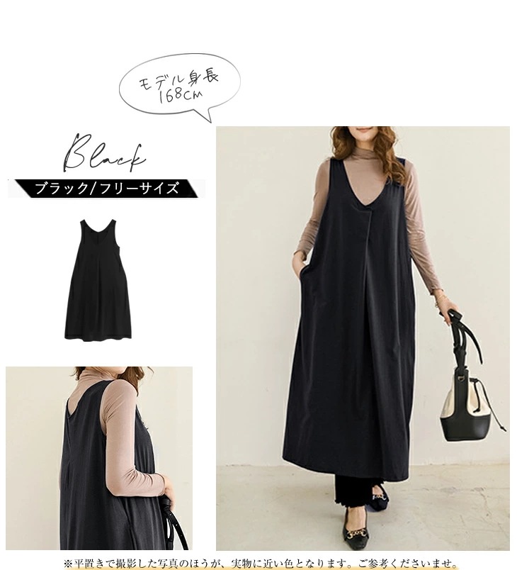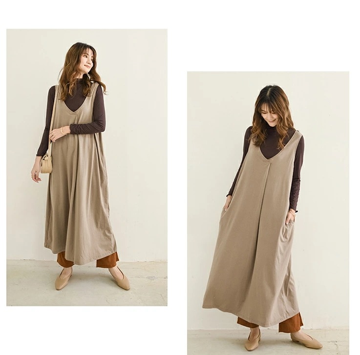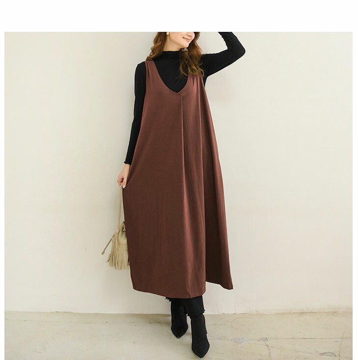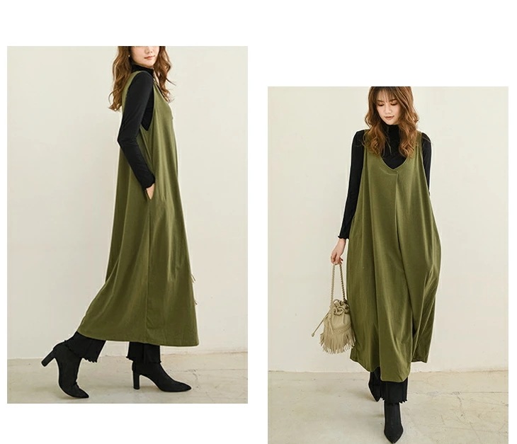 ワンピース サロペット オールインワン Vネック ロング丈 カジュアル ゆったり 体型をカバー 重ね着 レイヤード マタニティ オフェス 通勤 レディースファッション 20代 30代 40代 50代
