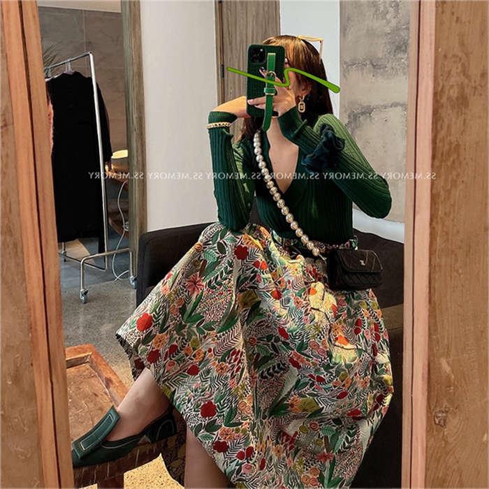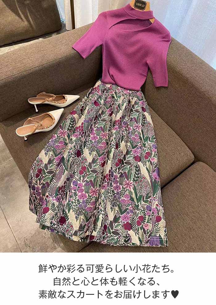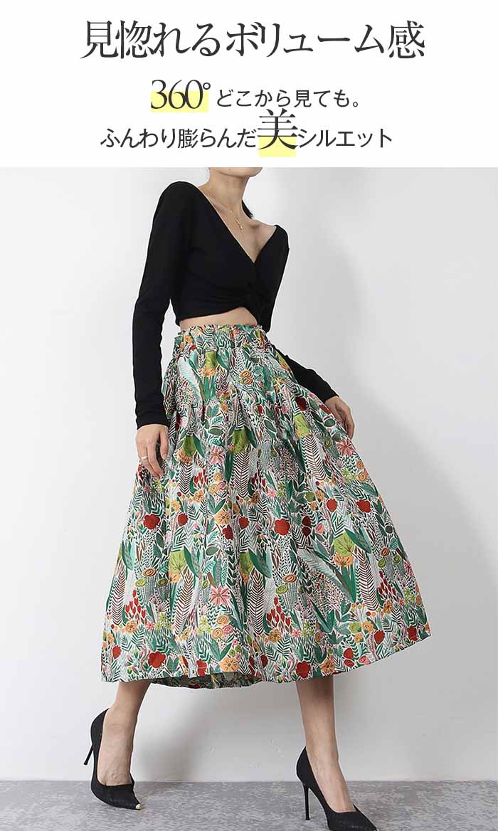 スカート ロング ミモレ丈 レディース ロングスカート 秋冬 秋 ボトムス 柄 ミモレ丈スカート フレア ロング Aライン 花柄 カジュアル おしゃれ 可愛い かわいい きれいめ 20代 30代 40