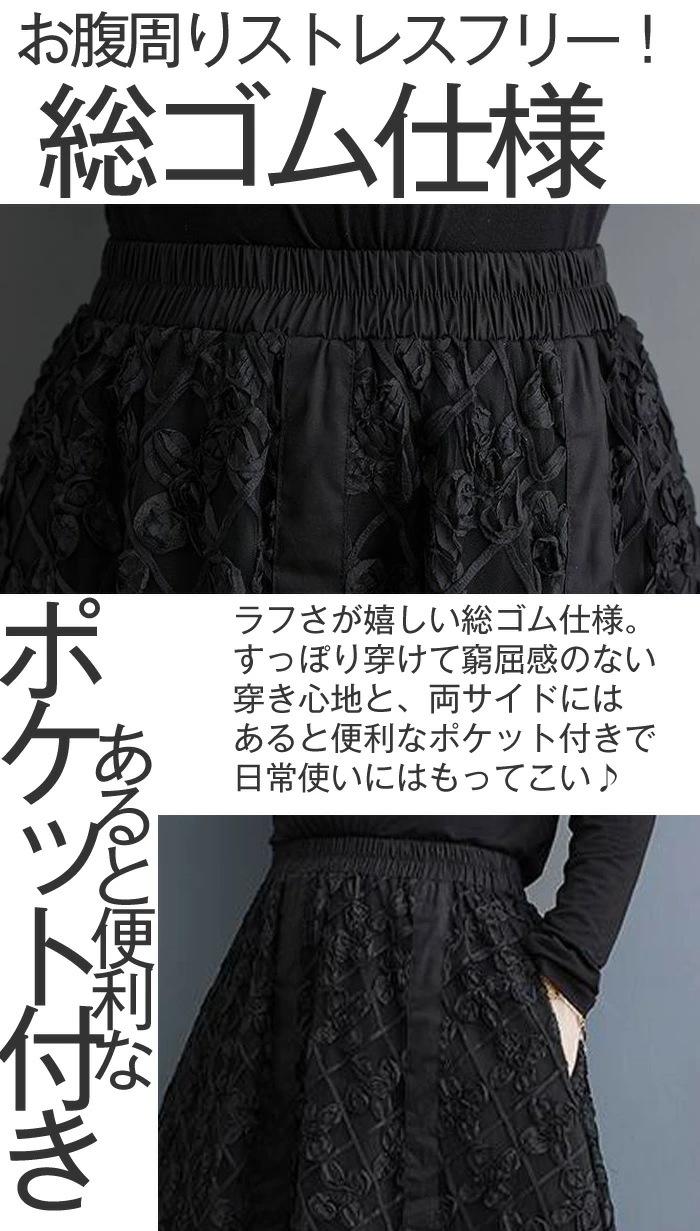 スカート 秋冬 フレアスカート ロング丈 ロングスカート 大きいサイズ ボトムス ボリューム 体型カバー ロング ミモレ丈 Aライン フレア ウエストゴム ゴム レディース 黒 ブラック 無地 カジュ