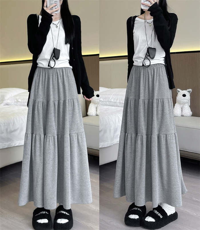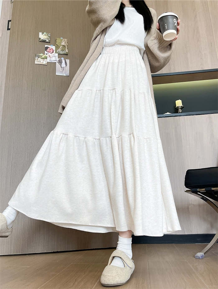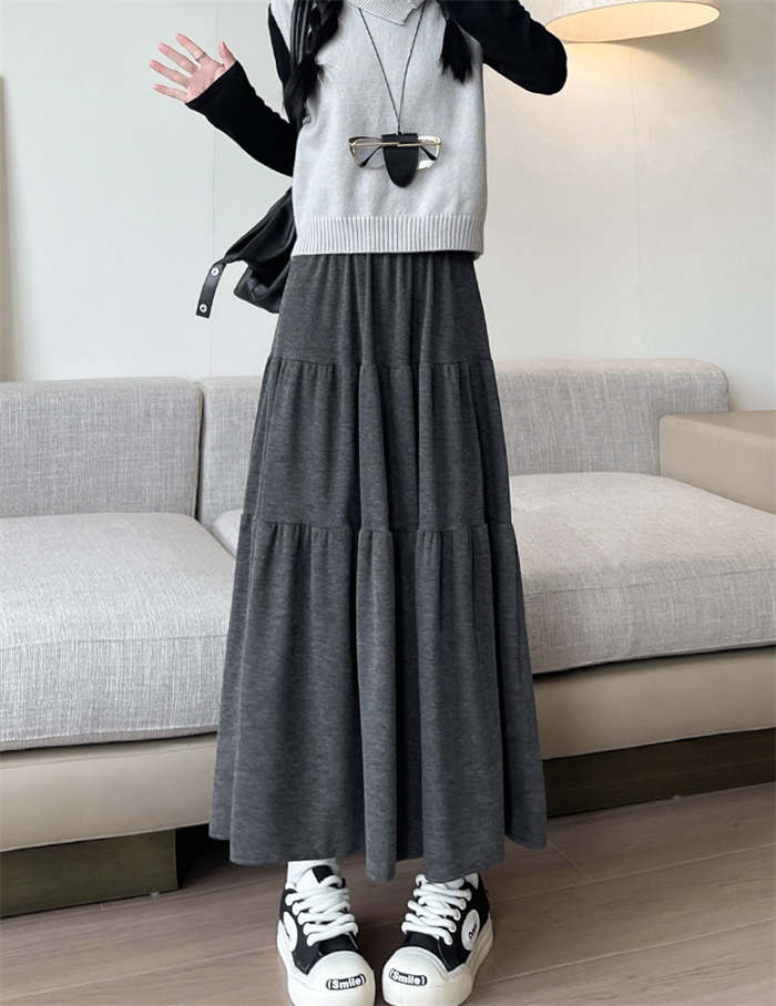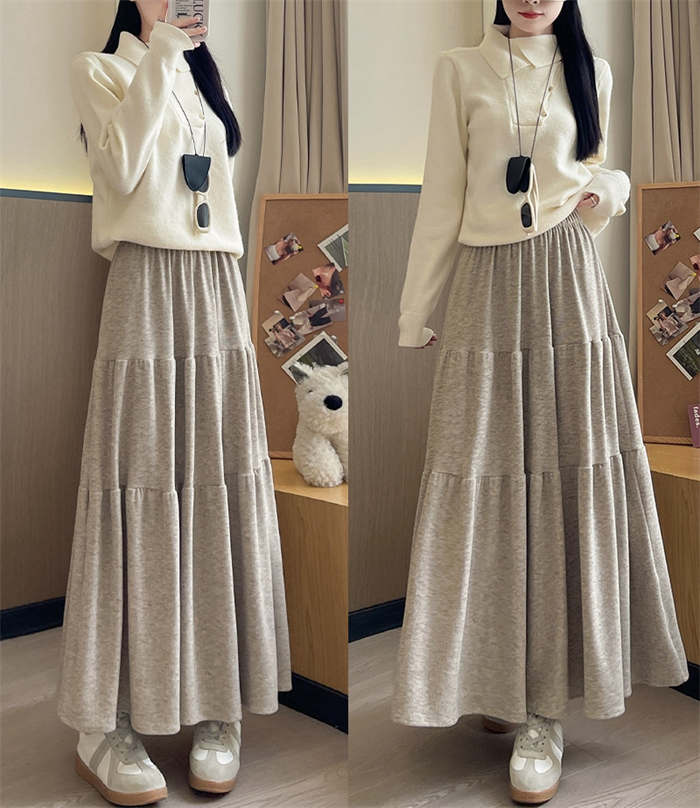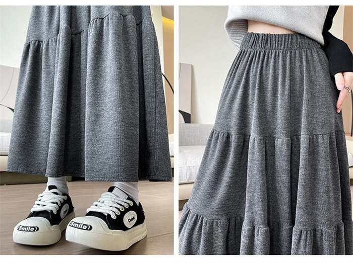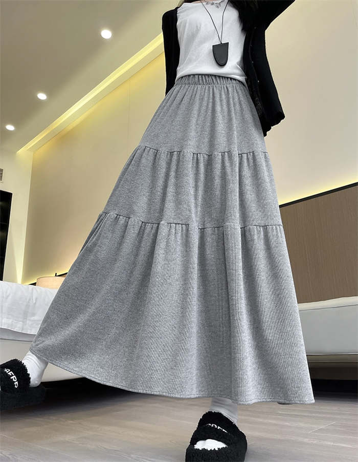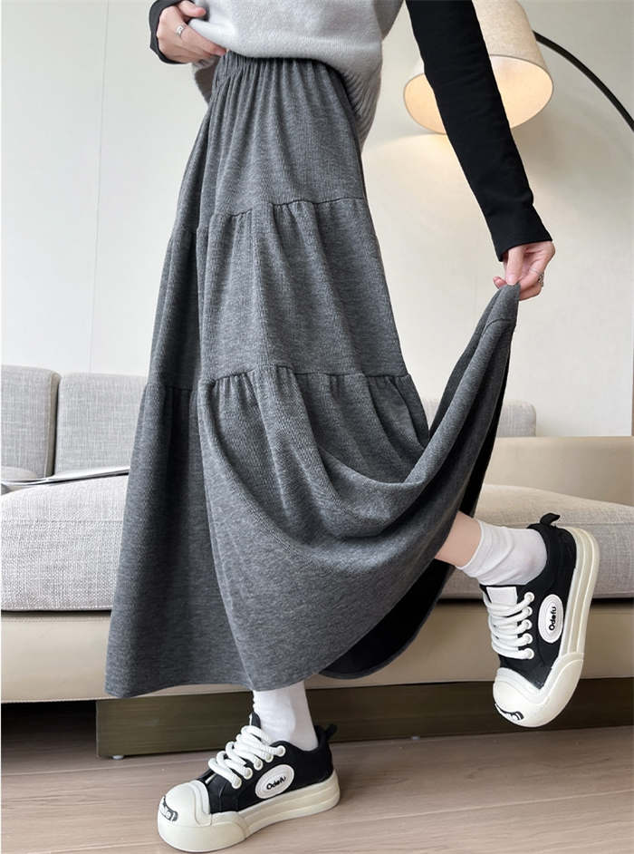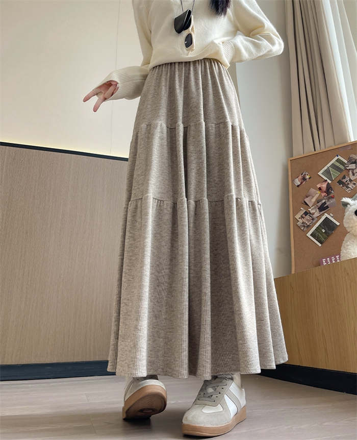 ニット スカート レディース ニットスカート 春 秋 冬 無地 ティアードスカート ロング丈 ボトムス フレア リブニット フレアスカート Aライン ティアード ウエストゴム シンプル 着回し お洒落