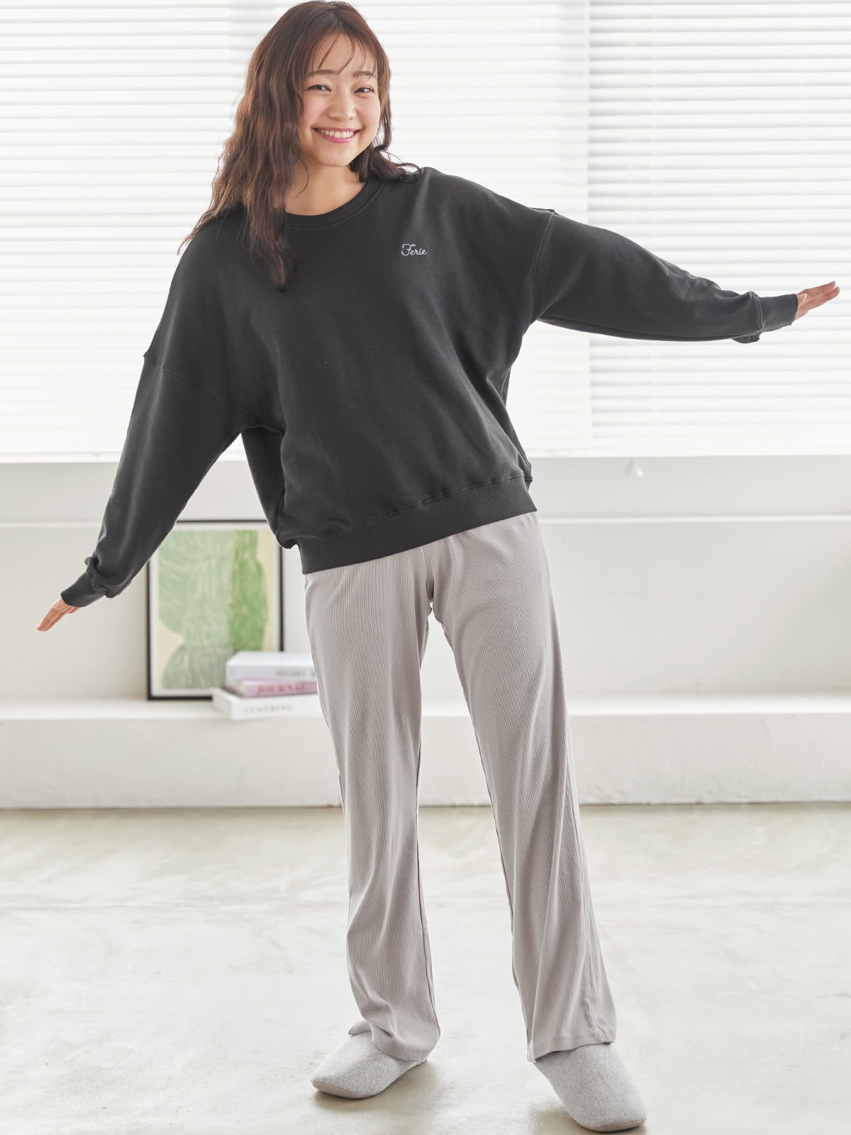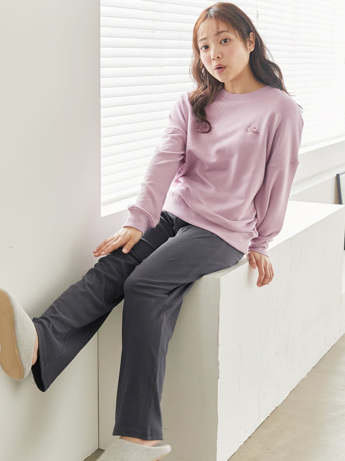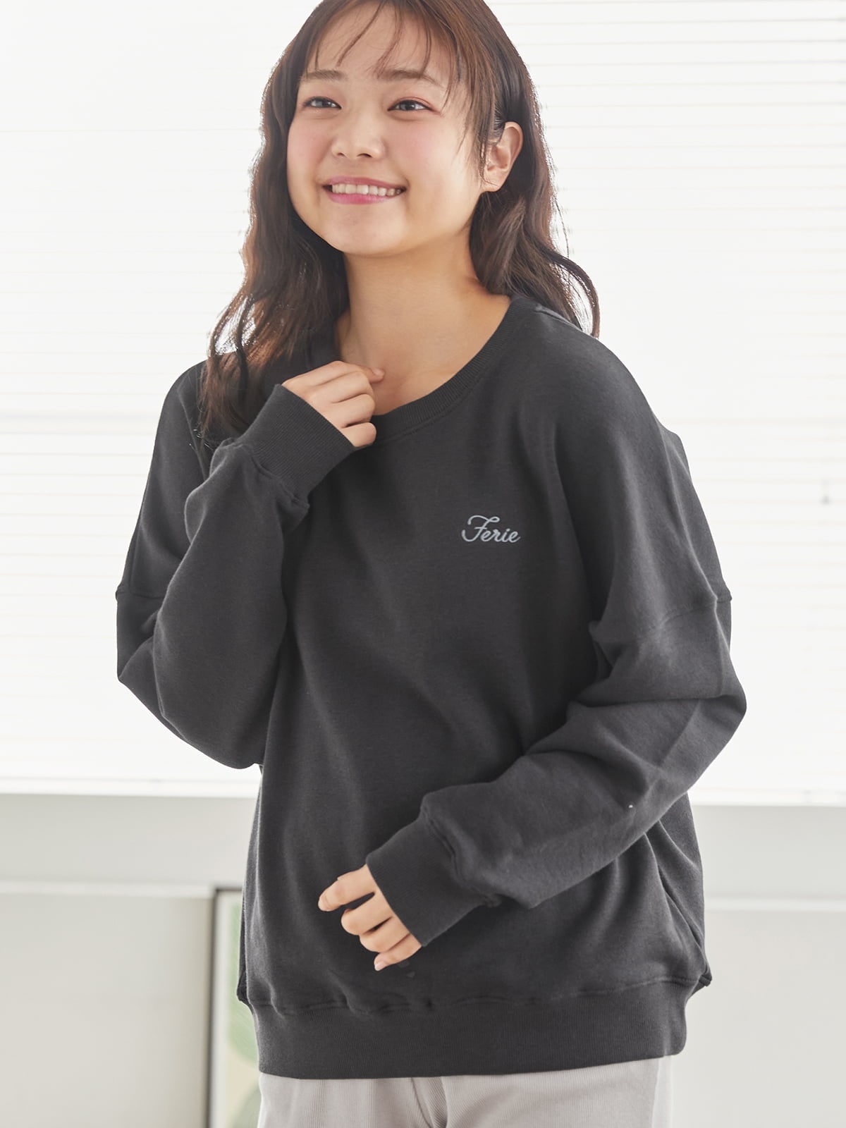 チュチュアンナ レディース ルームウェア トップス 単品 コットン 綿混 スウェット 長袖 [温度調整]ロゴ刺繍裏毛プルオーバー ルームウェア