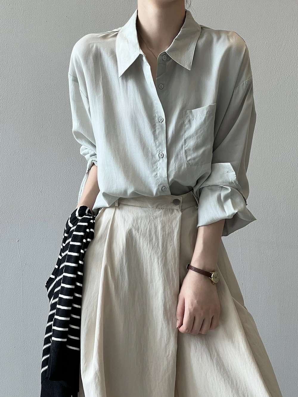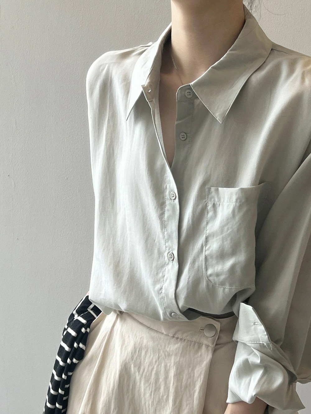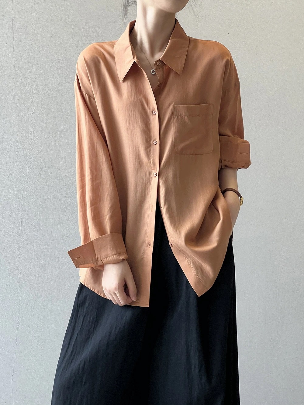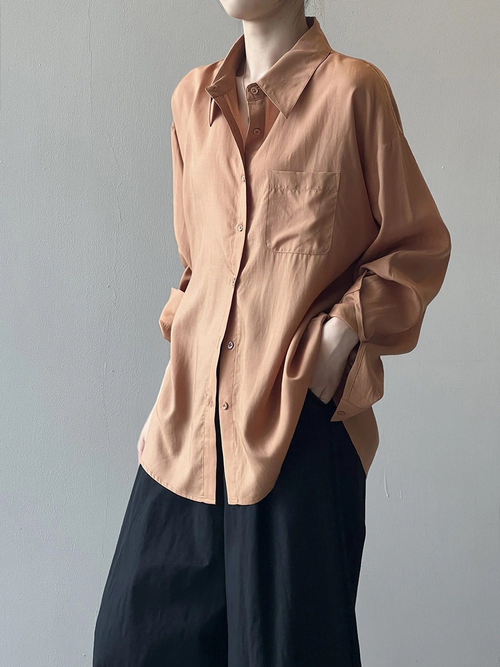 ブラウス シャツ レディース 長袖 トップス 羽織 重ね着 レイヤード ドロップショルダー お尻が隠れる 無地 襟 Vネック チュニック 大きいサイズ 体型カバー おしゃれ カジュアル ナチュラル