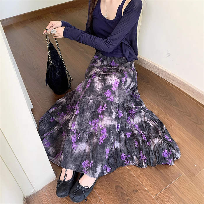 フレアスカート レディース スカート 花柄スカート 春 夏 秋 ロングスカート マキシ丈 花柄 ボトムス Aライン フレア ウエストゴム ハイウェスト プリーツスカート 体型カバー お出かけ ふんわり