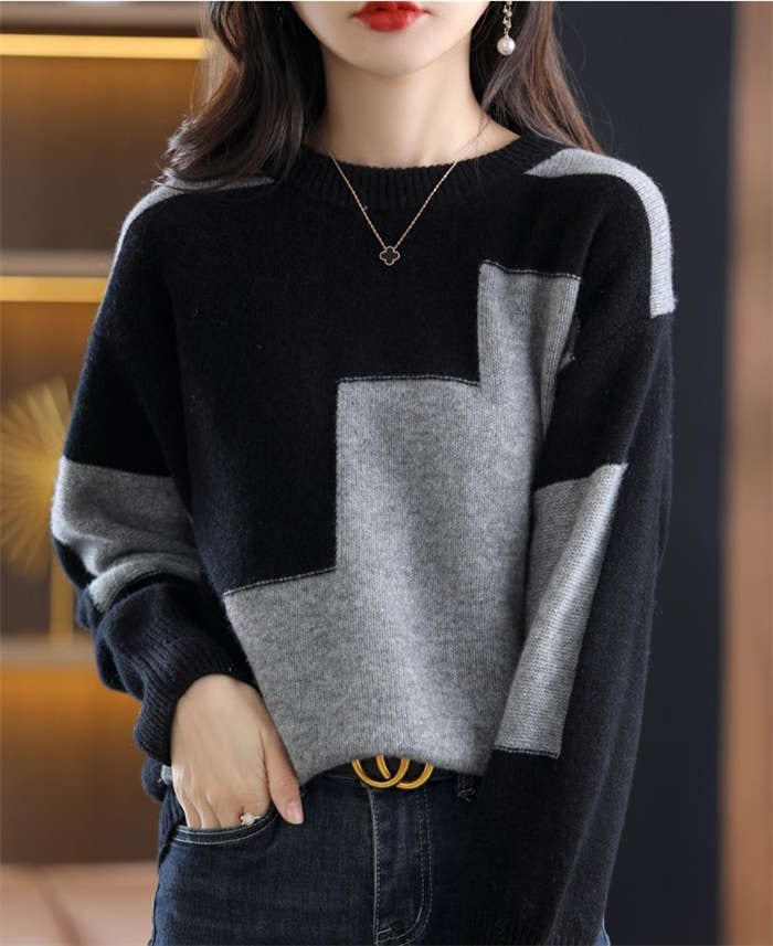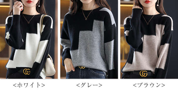 セーター レディース 秋冬 長袖 ニット ニットセーター ニット セーター トップス プルオーバー 秋冬 春 クールネック 長袖 配色セーター カジュアル シンプル 体型カバー きれいめ おしゃれ