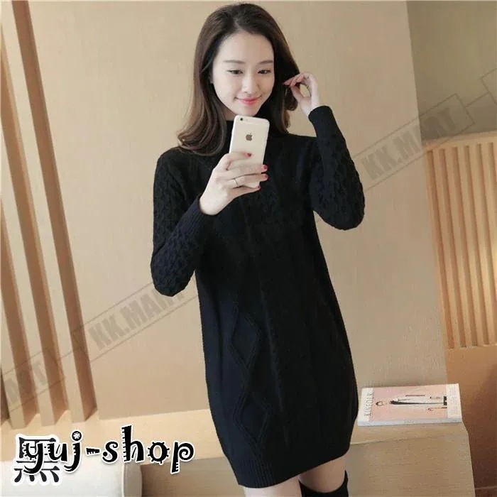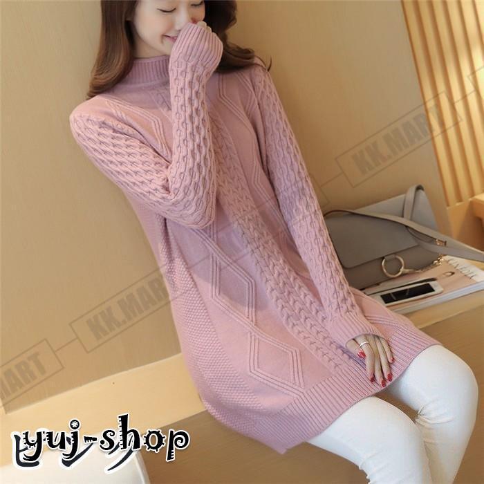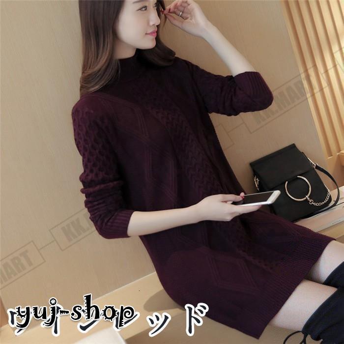 ニット ロング レディース セーター タートルネック ケープル編み ロングニット 長袖 ニットワンピース ニットセーター 秋冬 チュニック ニットウェア 40代 50代