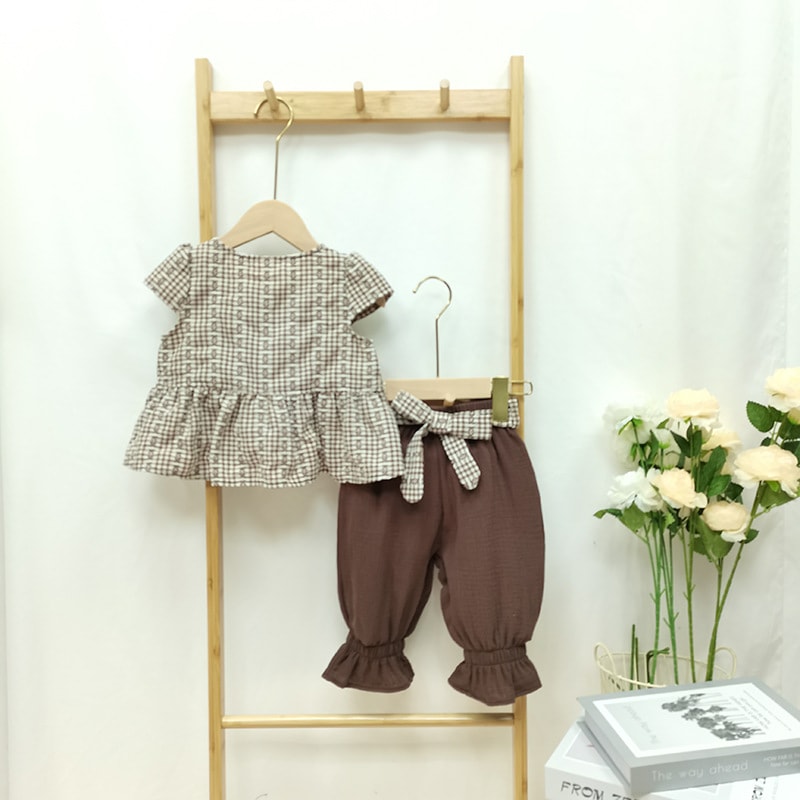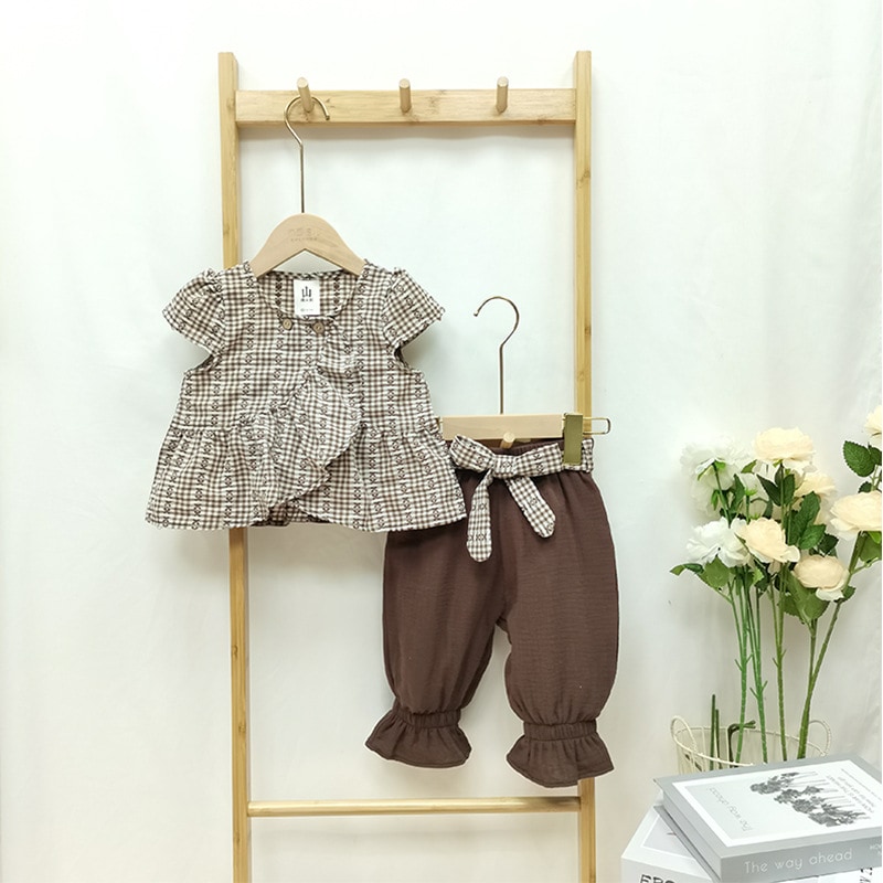 韓国版新2025女児スーツ夏の子供服洋風ファッション半袖丸首子供服ロングパンツ2点セット ワンピース