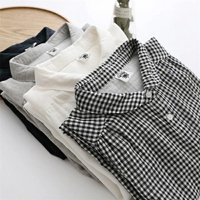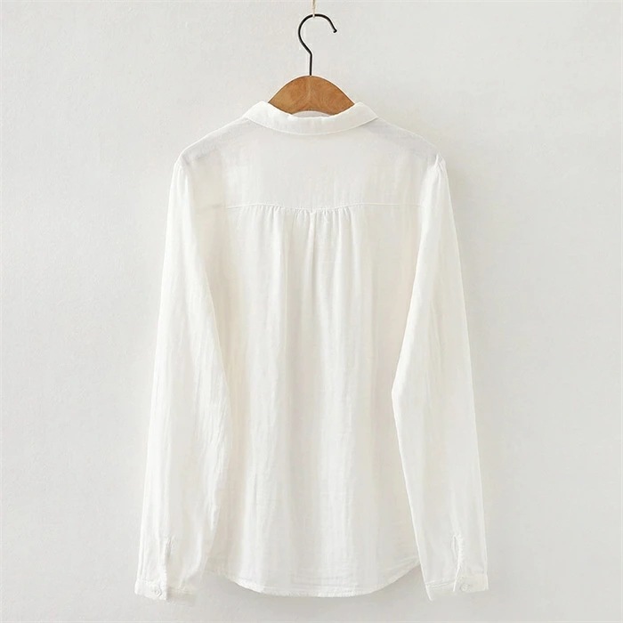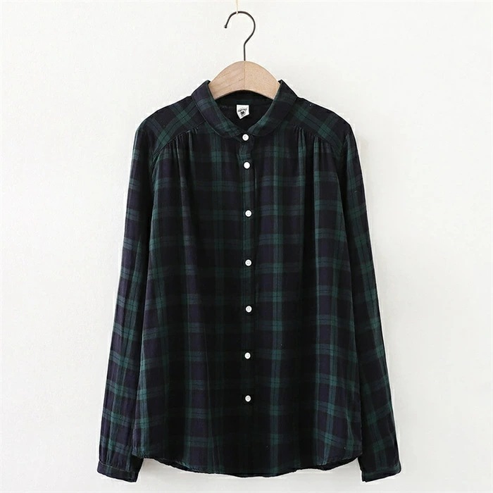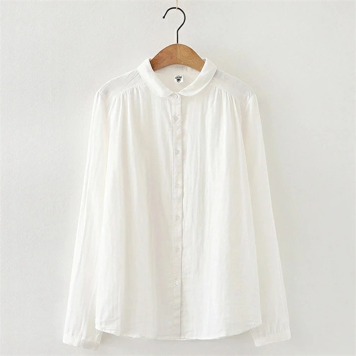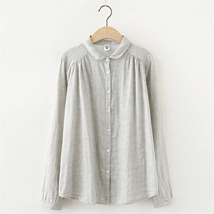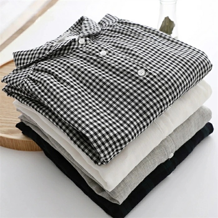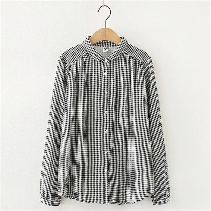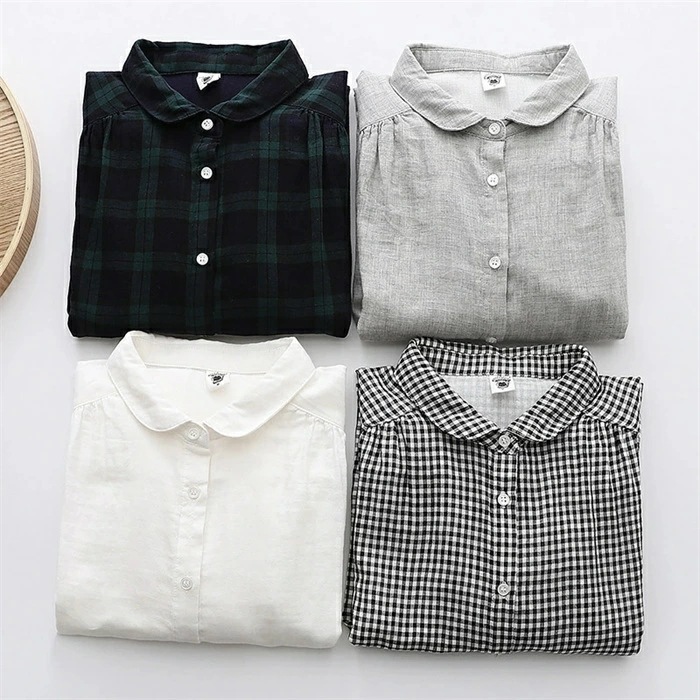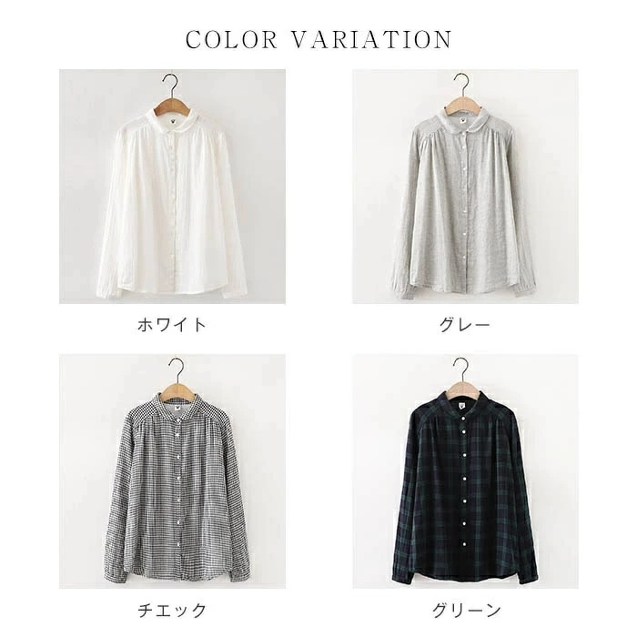 シャツ レディース 長袖 綿100% ブラウス ガーゼ おしゃれ 面接 トップス ダブルガーゼ コットン 丸襟 前開き カジュアル 無地 チェック柄 体型カバー 通勤 オフェス シンプル 着回し ガー