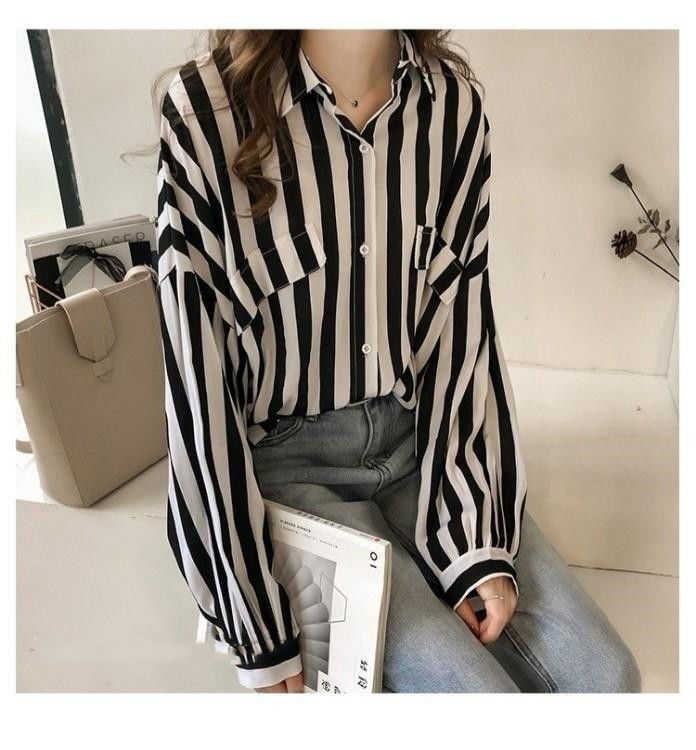 ブラウス 無料 春人気 ストライプ シフォンブラウス レディース 韓国ファッション大きいサイズ着痩せ 長袖トップス 通勤気質 百掛けシアーシャツ 気質 夏UVカットシャツ Tシャツ