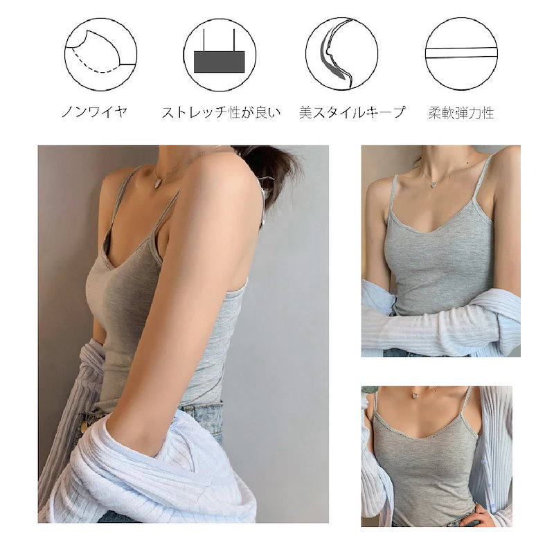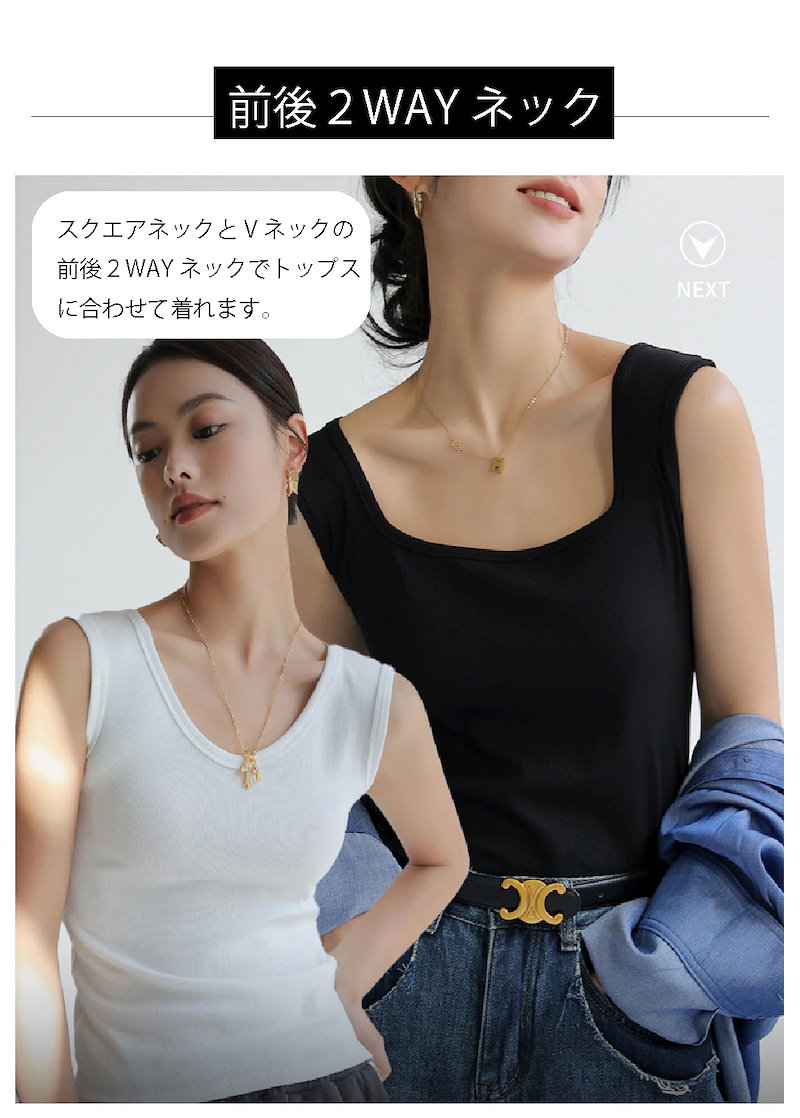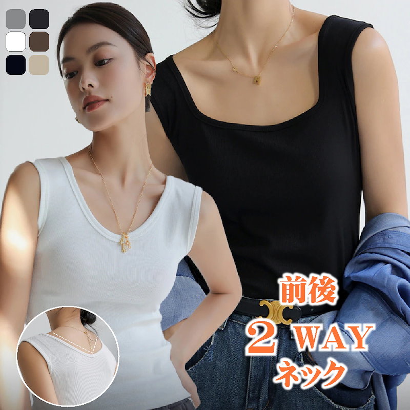 キャミソールタンクトップ レディース インナー重ね着 キャミソール スクエアネック vネック前後2 インナーキャミソール