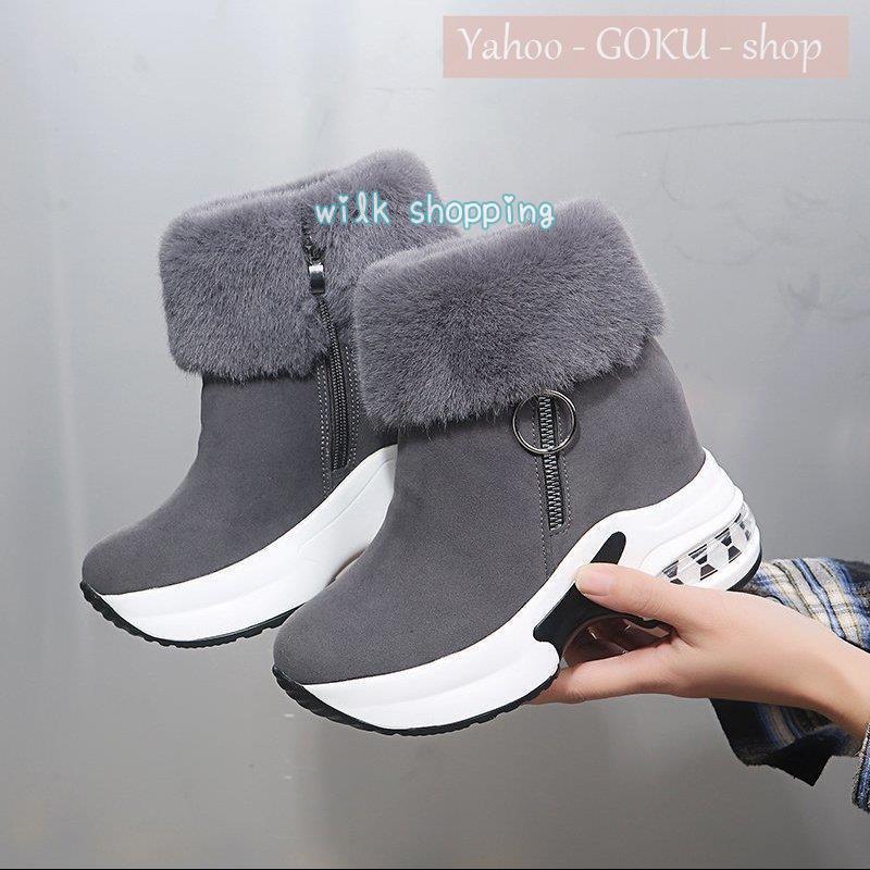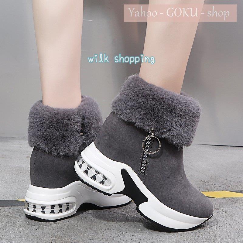 ムートンブーツ ボア 裏起毛 ファー レディース スノーブーツ ショートブーツ 厚底 インヒール ファッション 美脚 脚長 お洒落 背が高くなる