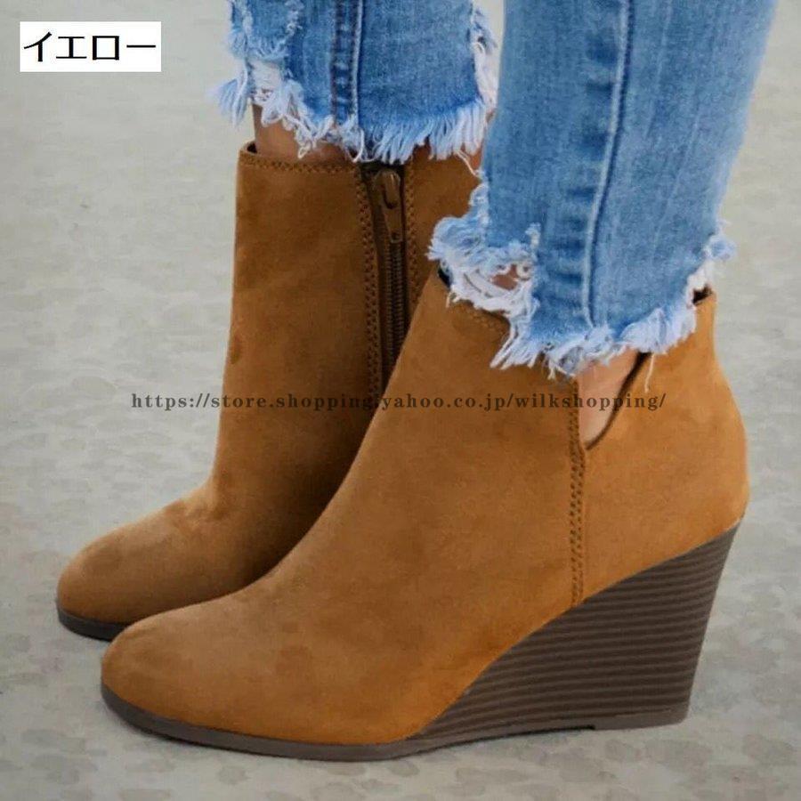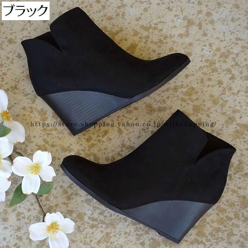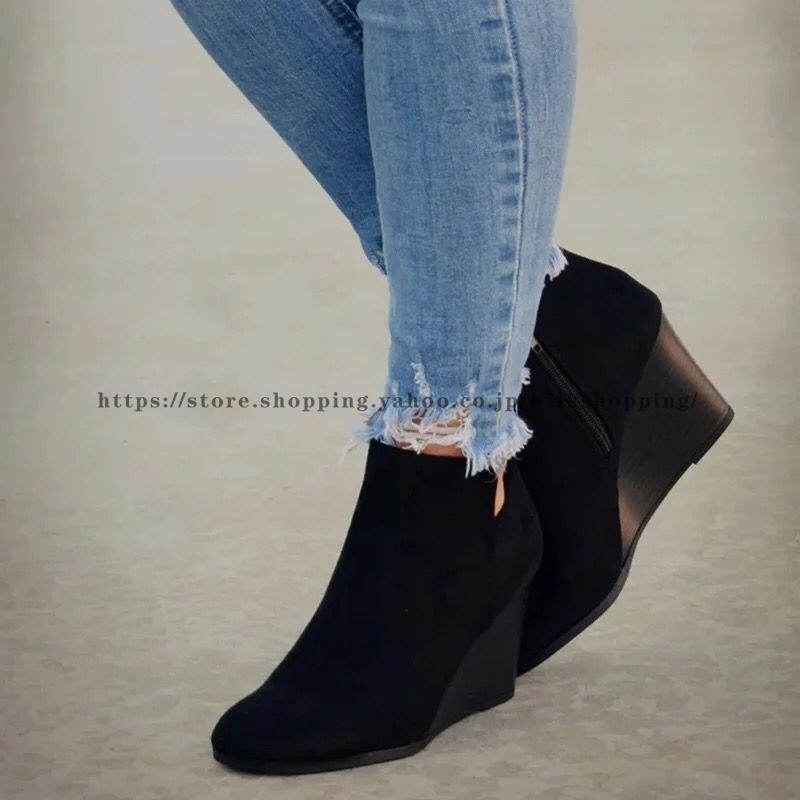 ショートブーツ ショート丈 レディース スエード調 ヒョウ柄 ウェッジヒール ウェッジソール スリット 無地 単色 ファスナー ジップアップ 婦人用