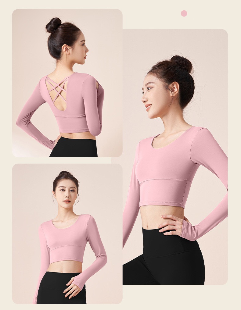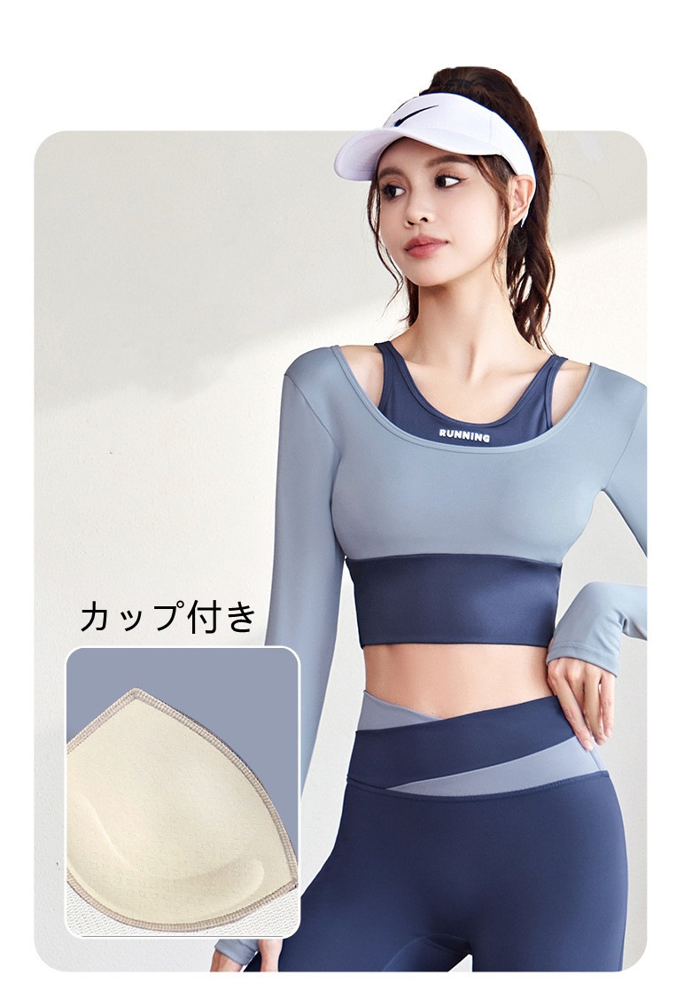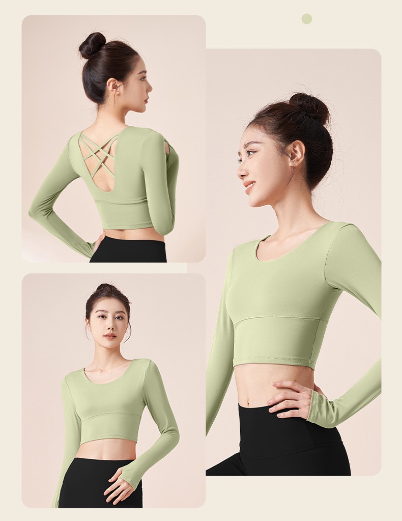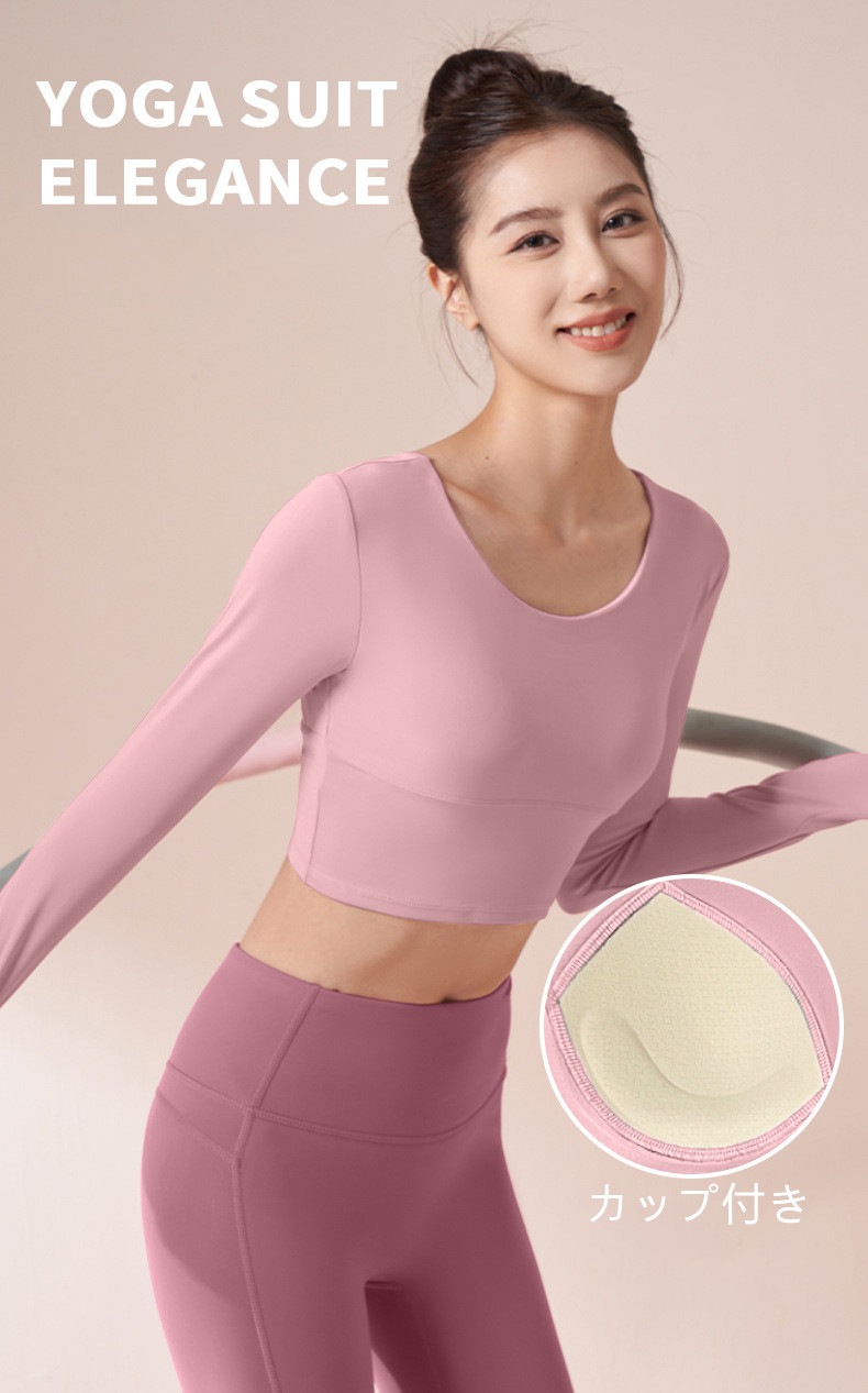 ヨガウェア 長袖 カップ付き 指穴 ヨガ トップス レディース ショート丈 クロップド丈 トレーニングトップス ピラティスウェア かわいい フィットネス ヨガトップス