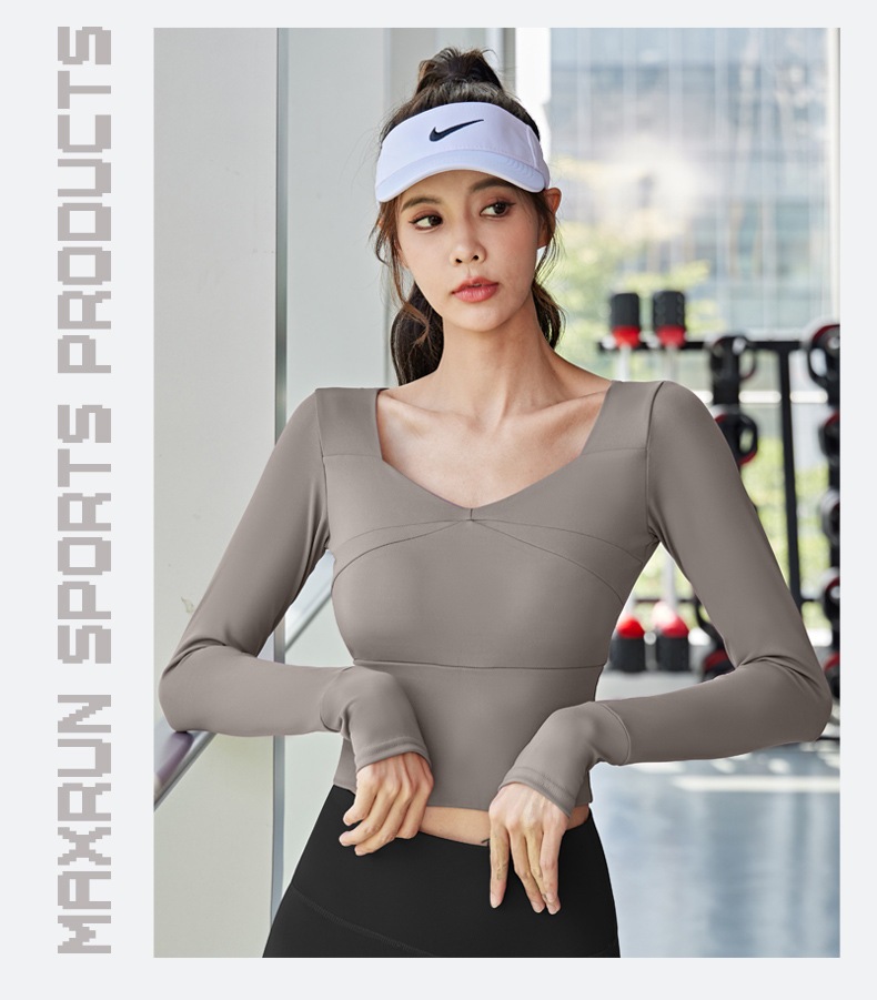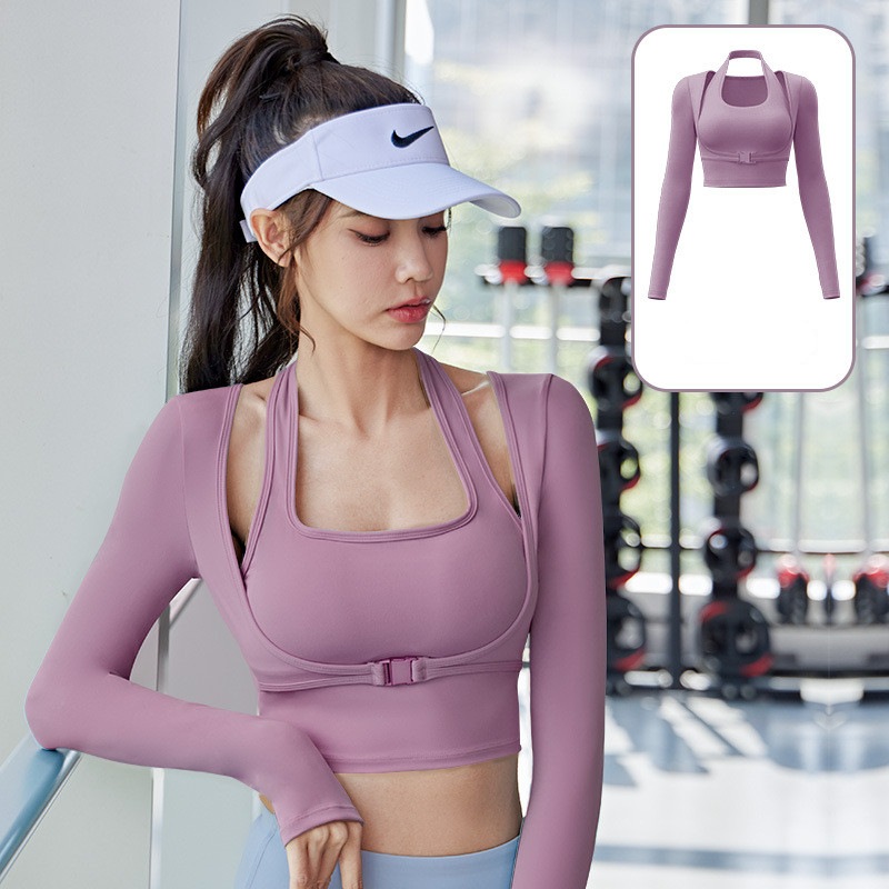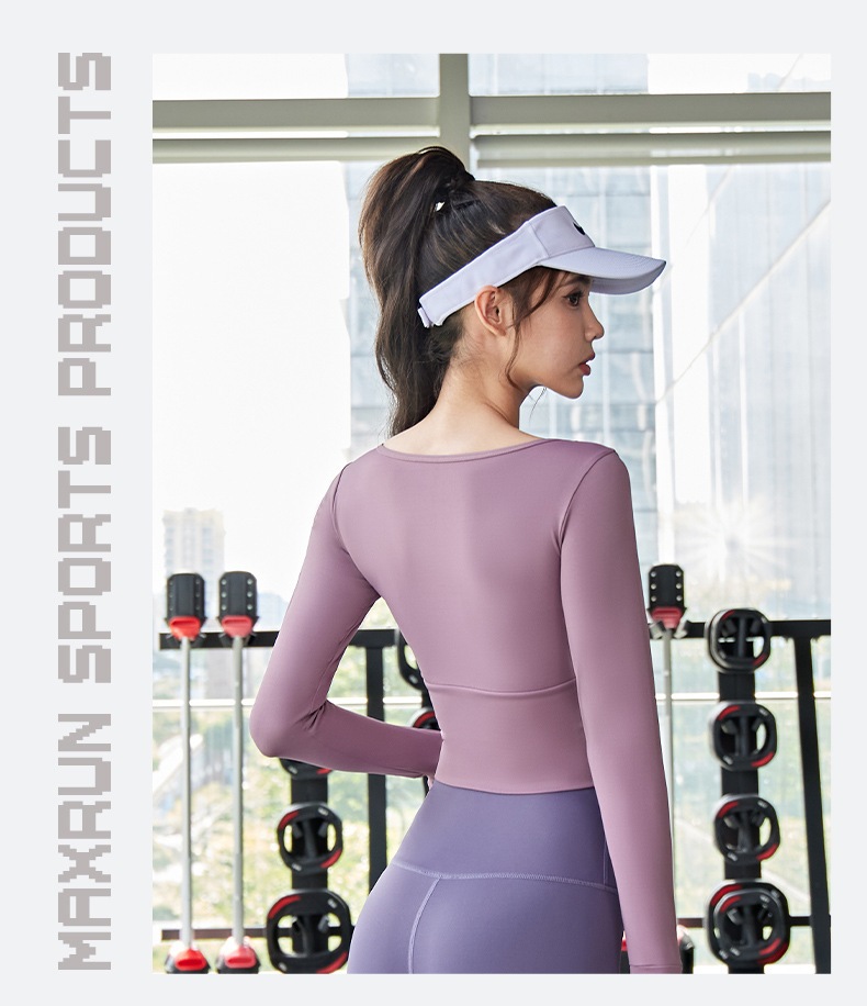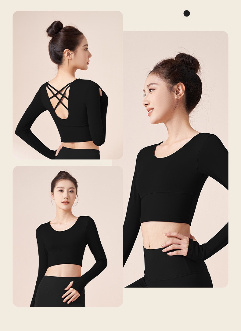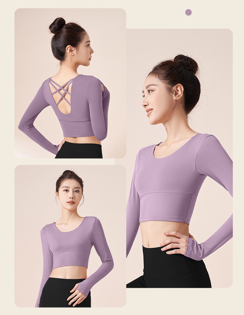 ヨガウェア 長袖 カップ付き 指穴 ヨガ トップス レディース ショート丈 クロップド丈 トレーニングトップス ピラティスウェア かわいい フィットネス ヨガトップス