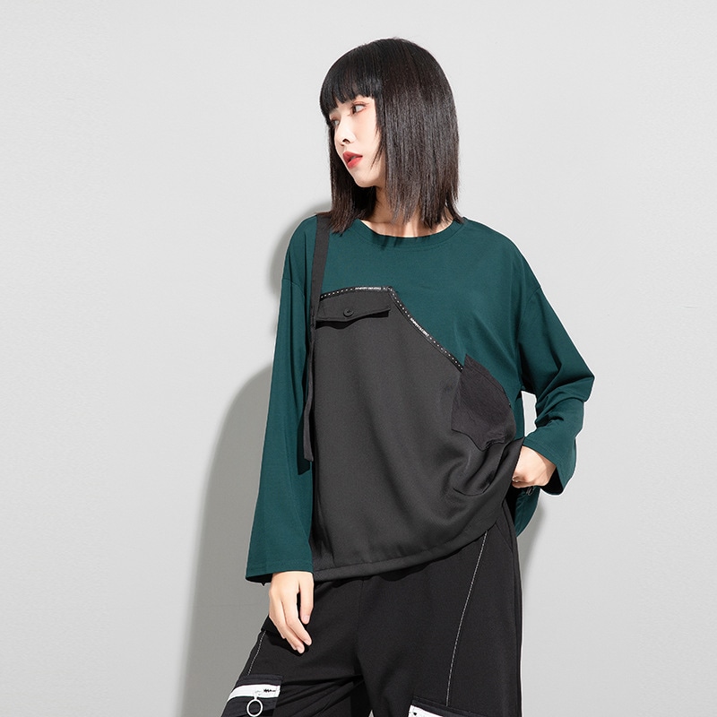 欧米新型春秋の暗黒切り替えせラウンドネック トップスtシャツの長袖ブラウス大きいサイズティーシャツ Tシャツ カットソー