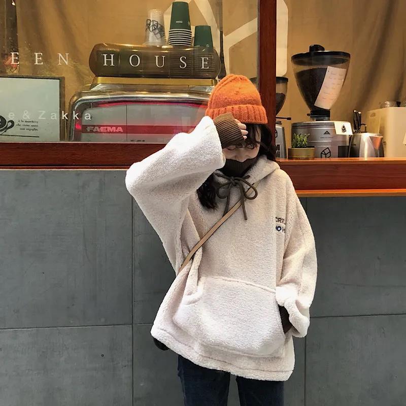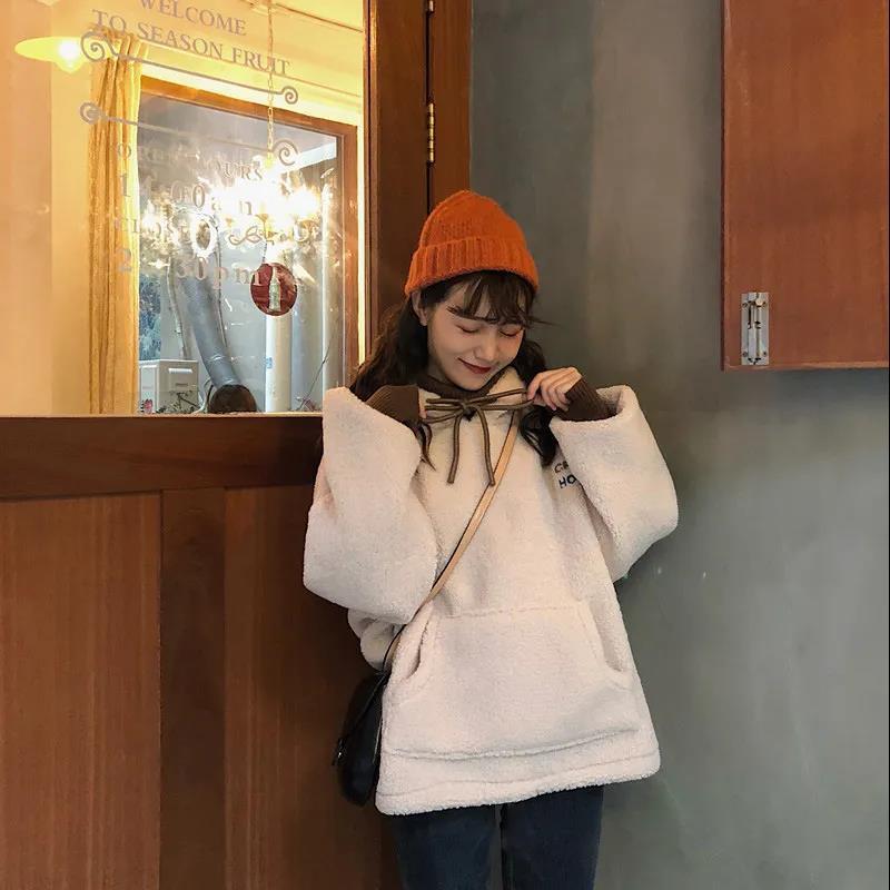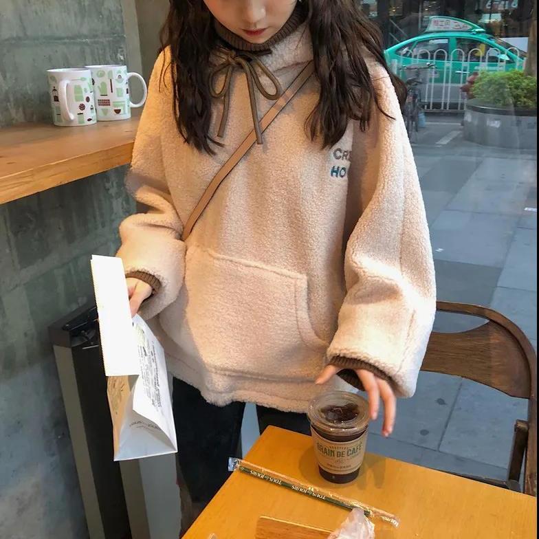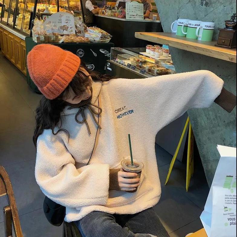 パーカー ゆったりスウェット 裹起毛 冬フェイクレイヤード ラムズウール 厚手ウォーム 長袖トップス ゆったり百掛け レディース パーカー