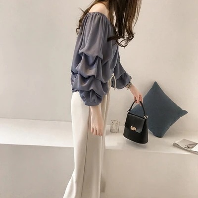 シフォンブラウス シアーブラウス ボリューム袖