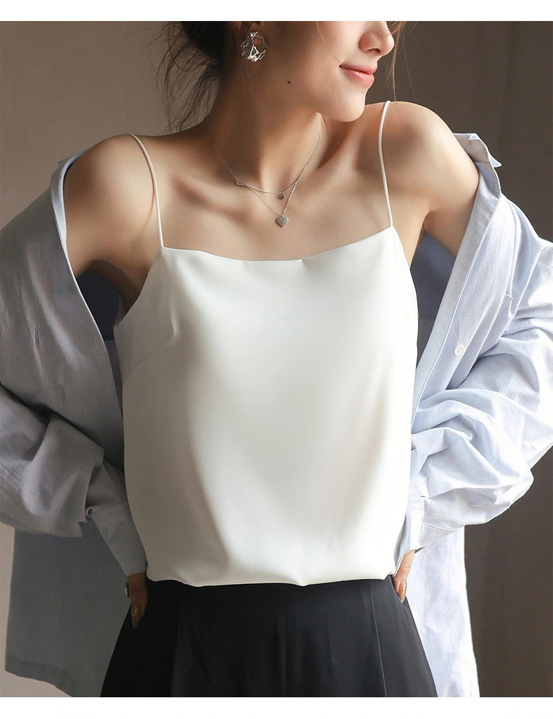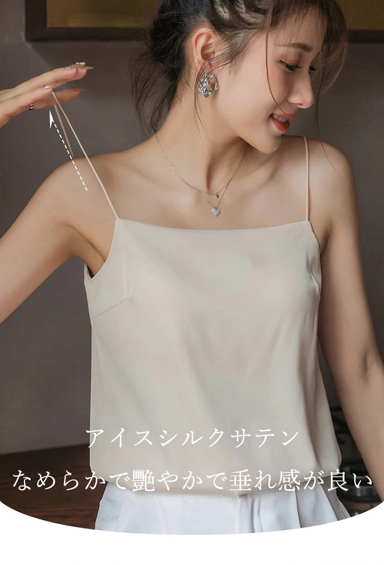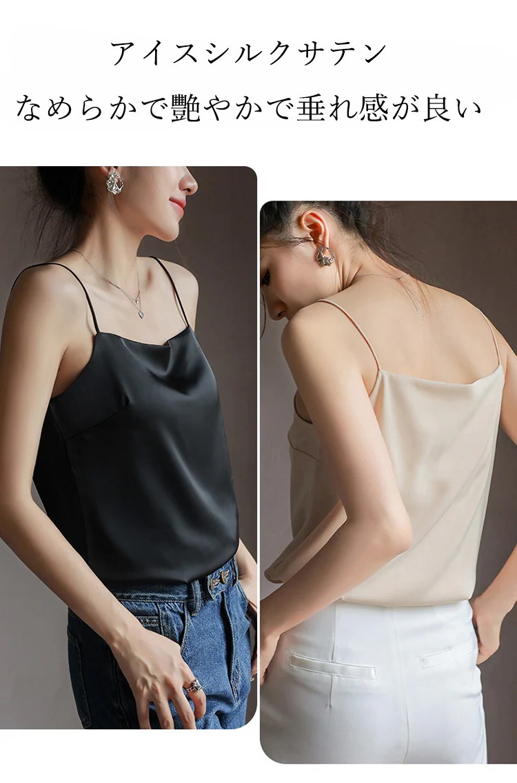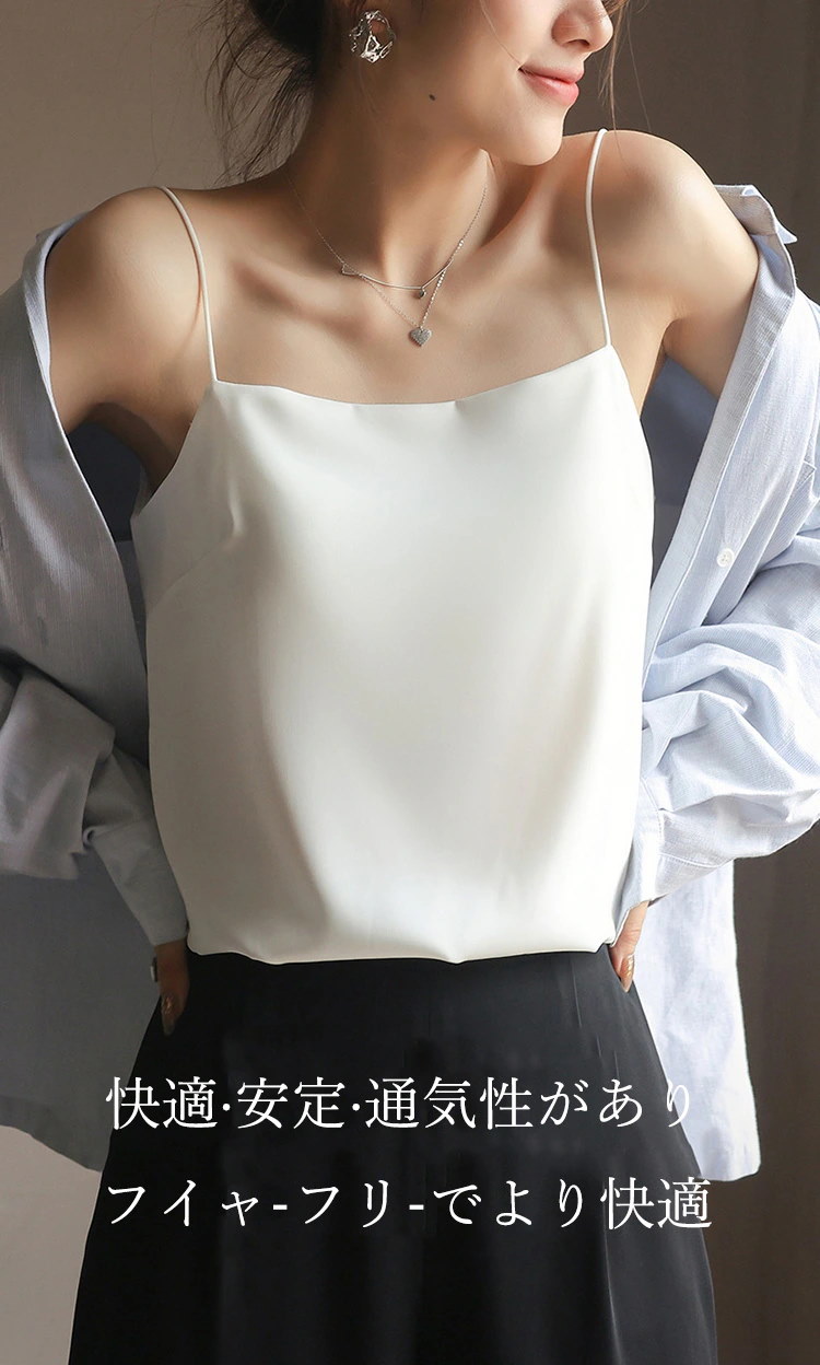 ブラ要らず セクシー キャミソール カップ付き サテンスリップ 光沢 重ね着 キャミソール 柔らかい 快適 肌優しい インナー ブラウス トップス タンクトップ オフィス 上品