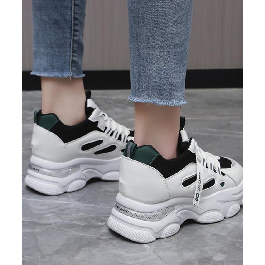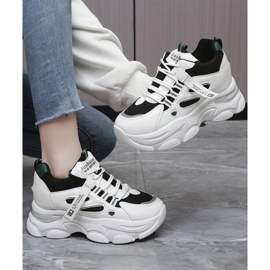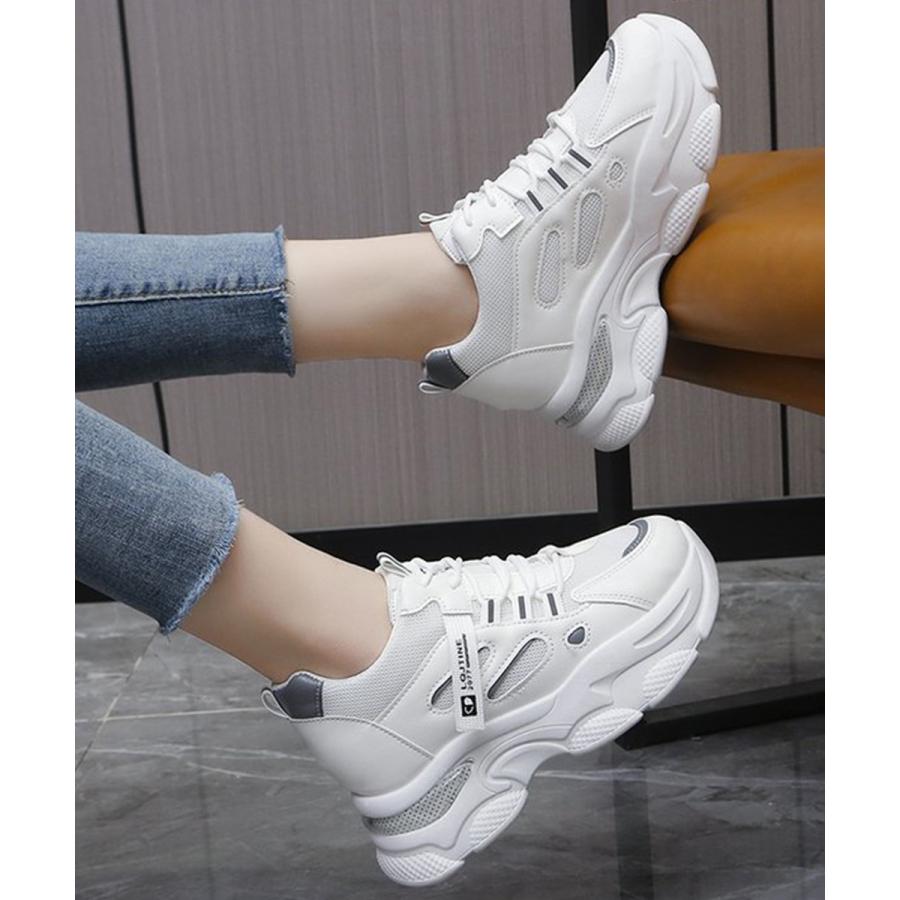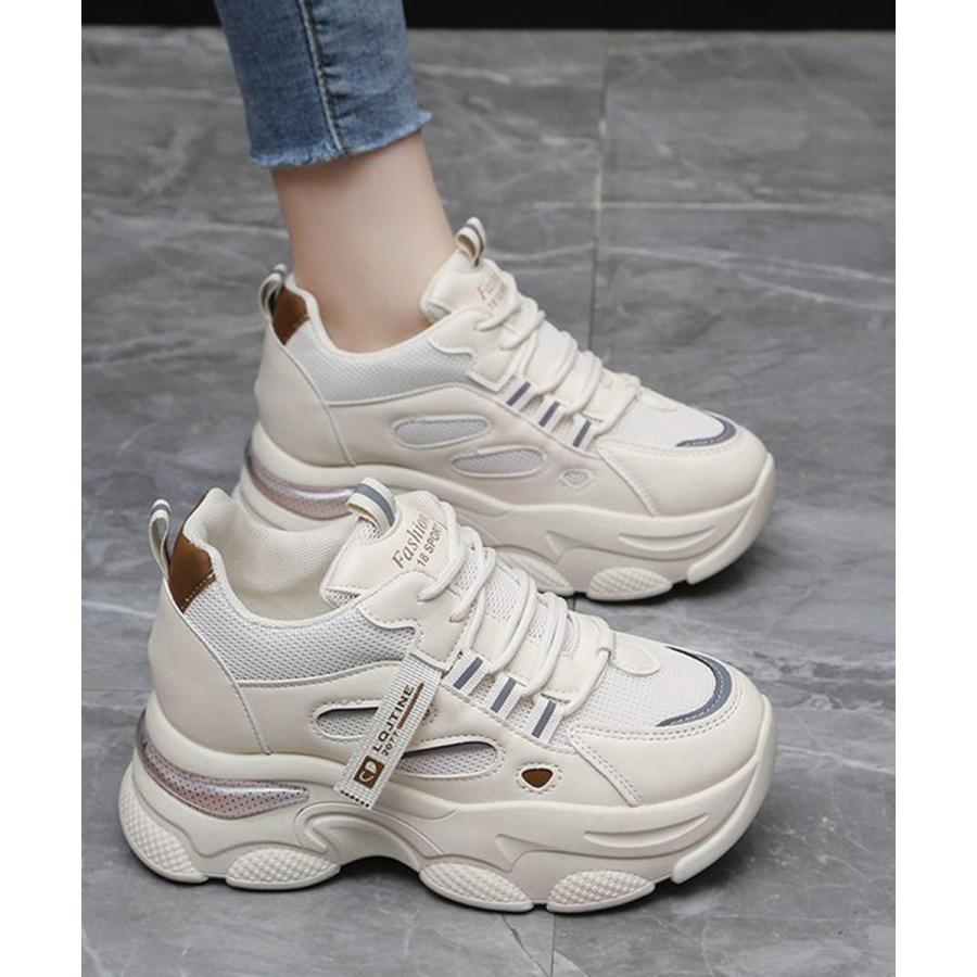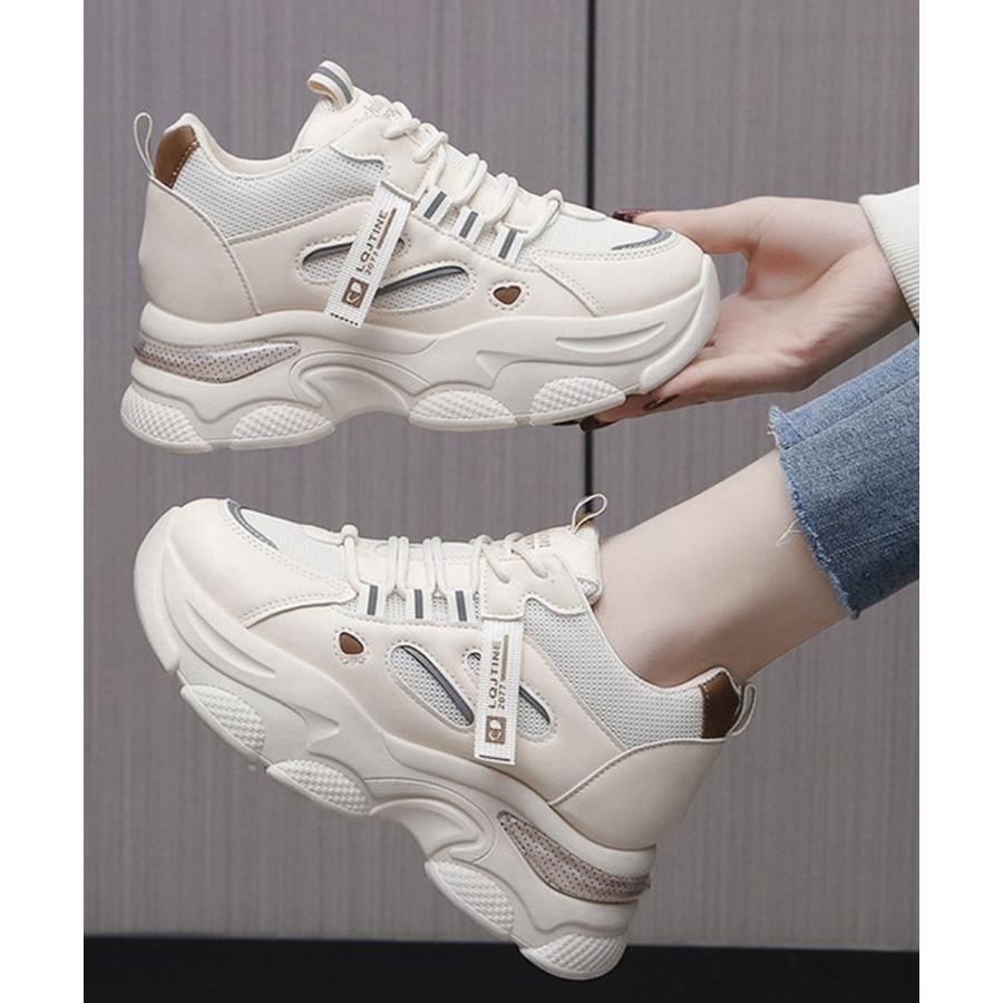 厚底ダッドスニーカー レースアップ 韓国 楽ちん フラットパンプス レディーススポーツシューズ