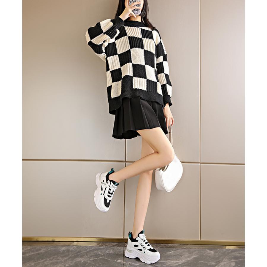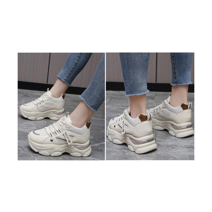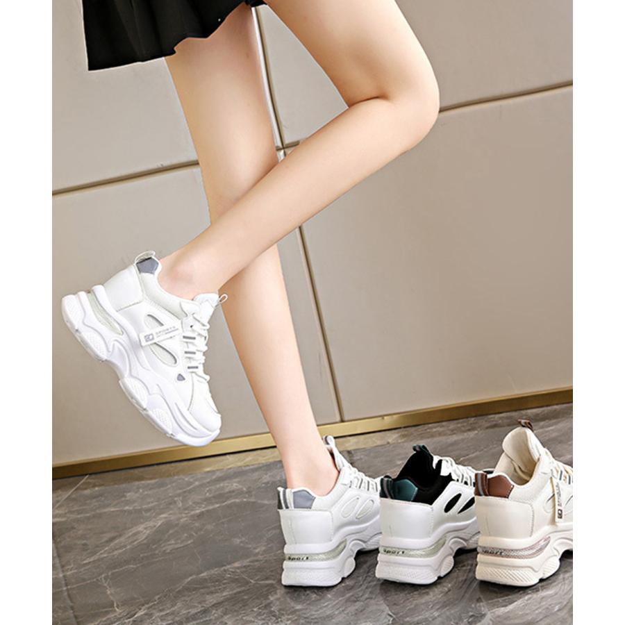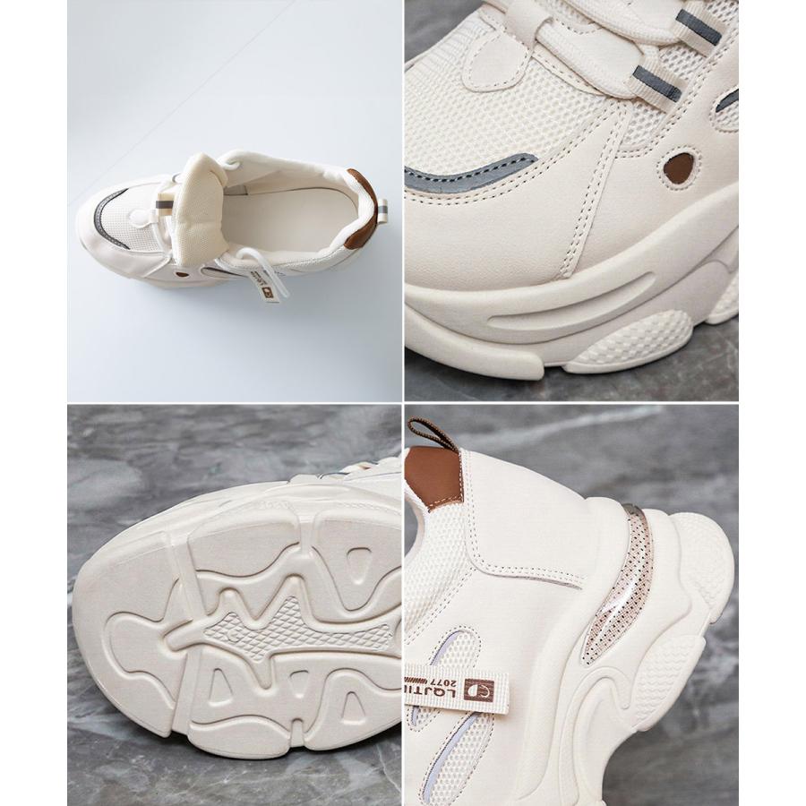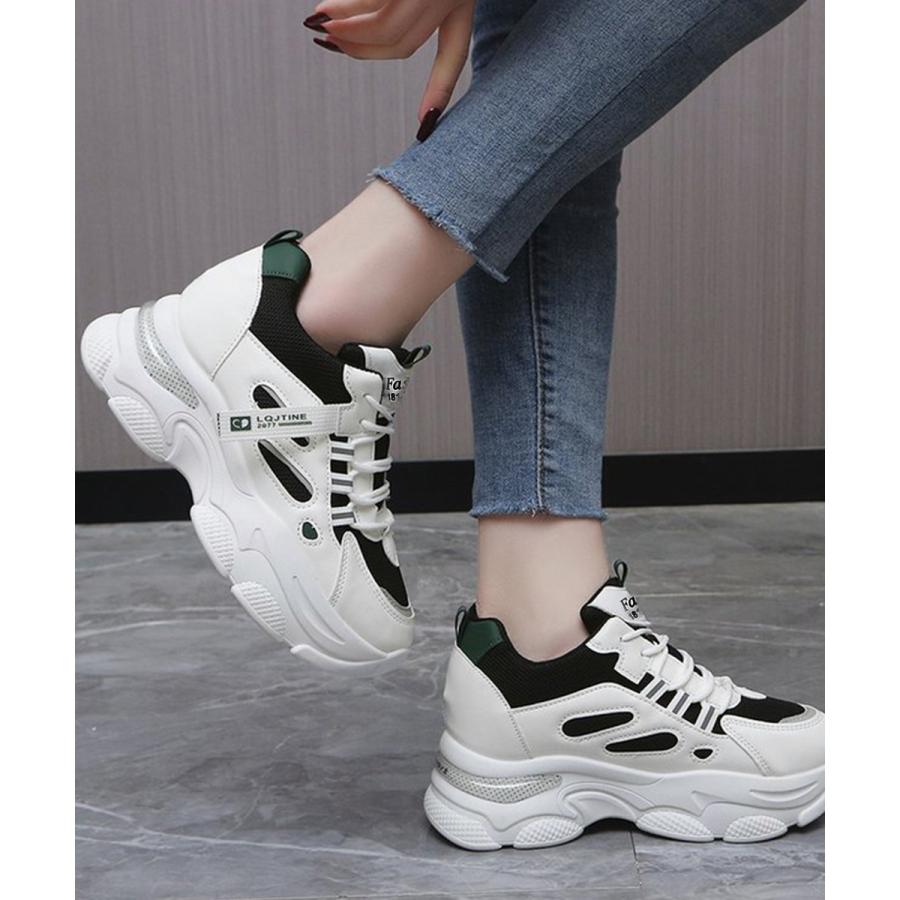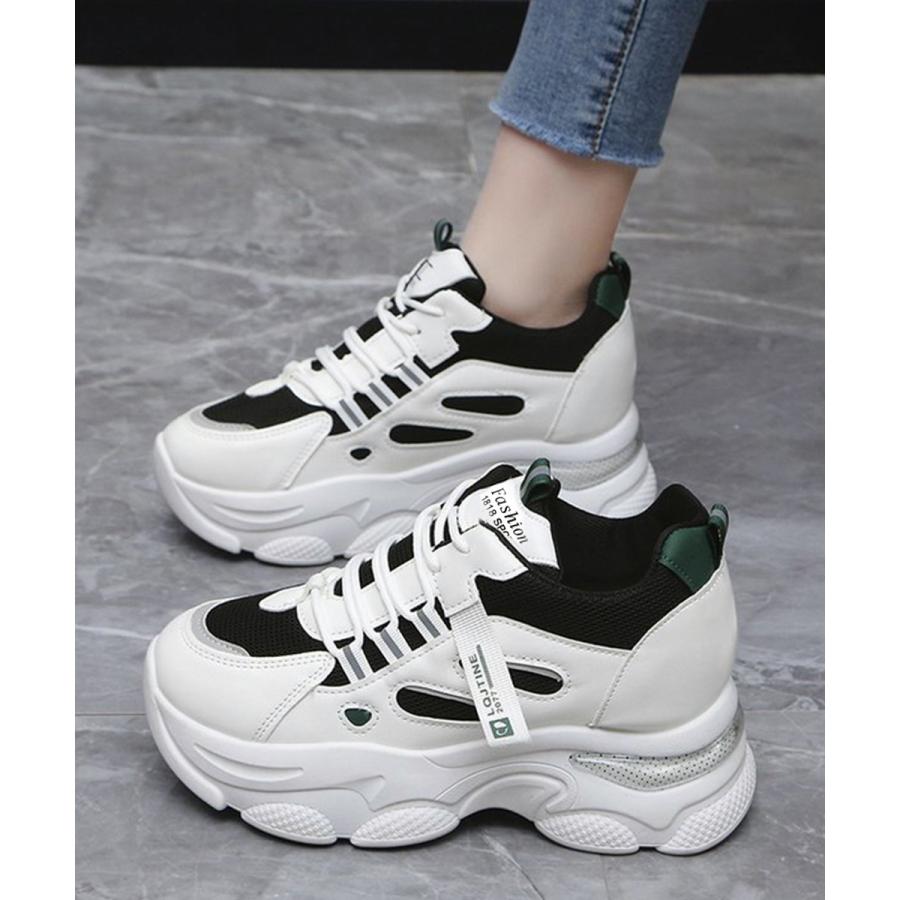 厚底ダッドスニーカー レースアップ 韓国 楽ちん フラットパンプス レディーススポーツシューズ