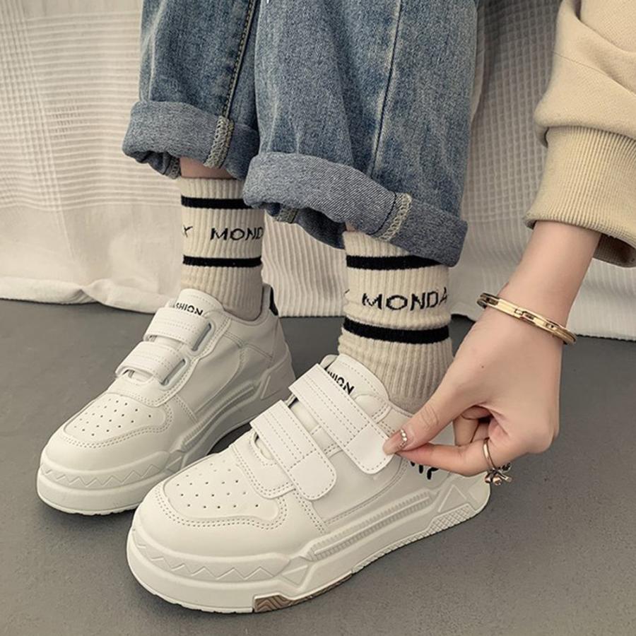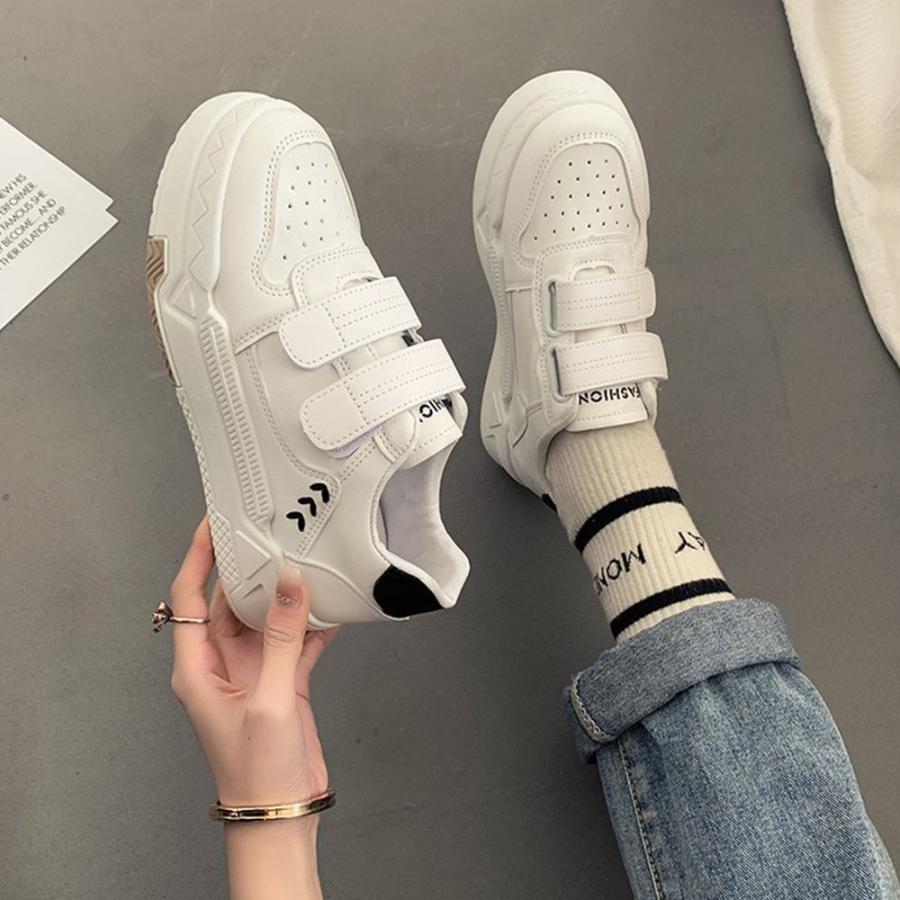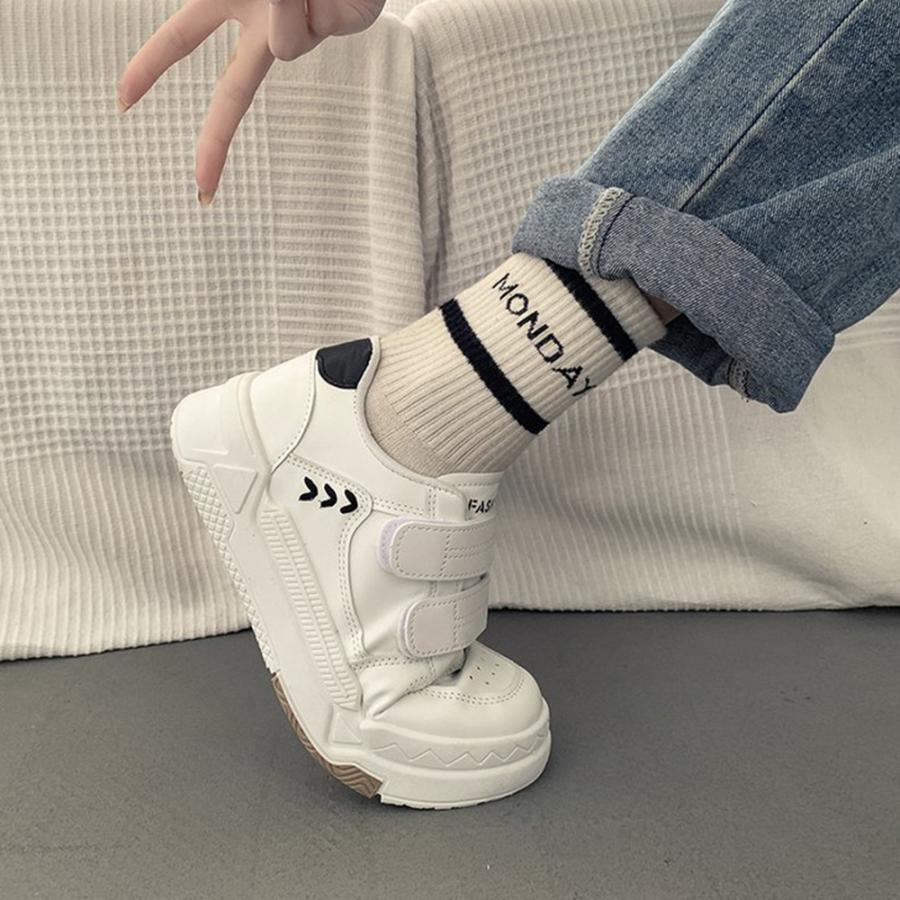 厚底スニーカー ベルクロ レディース美脚 楽ちん フラットパンプス レディーススポーツシューズ