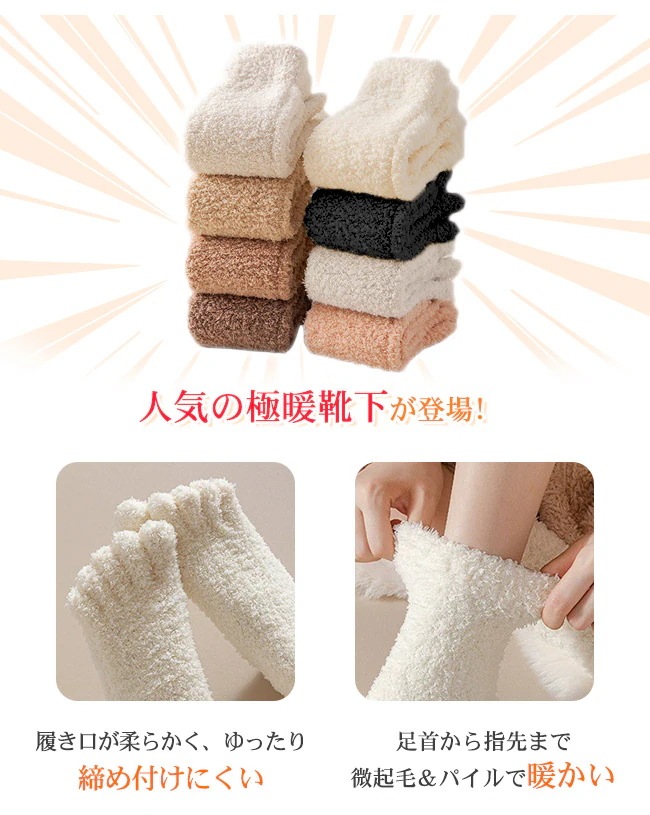 もこもこ靴下 ルームソックス 五本指 レディース 暖かい 着る毛布 冷えとり メンズ 暖房グッズ モコモコ靴下 厚手 冬 かわいい ボア 防寒 ふわふわ