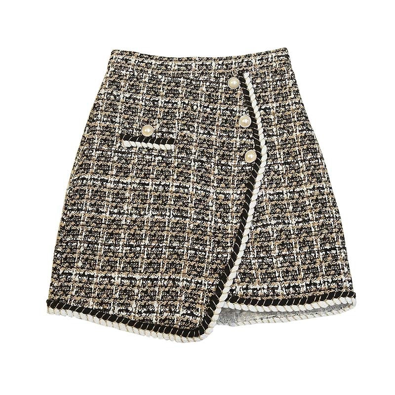 マキシスカート 不規則 格子柄 ハーフスカート レディース ハイウエスト Aラインスカート シングルブレスト ショートスカート 韓国ファッション