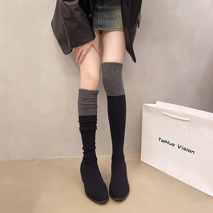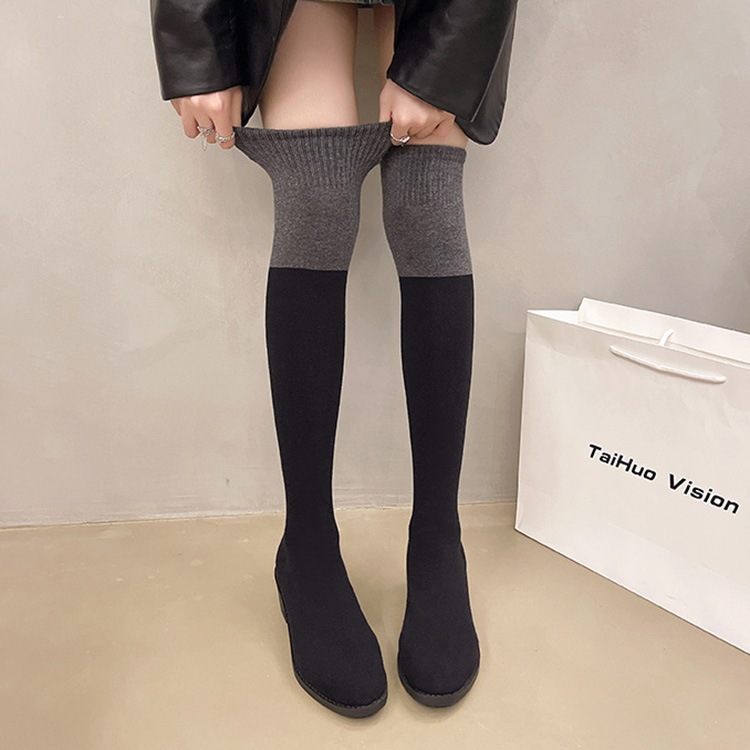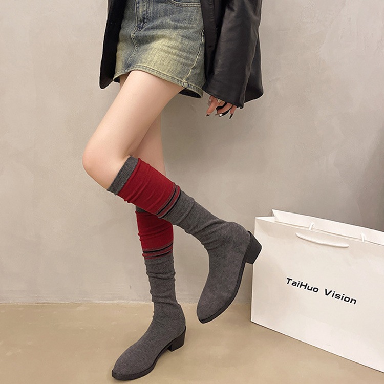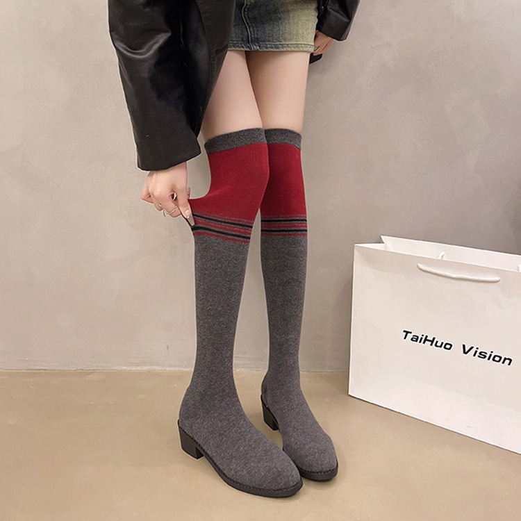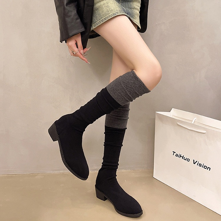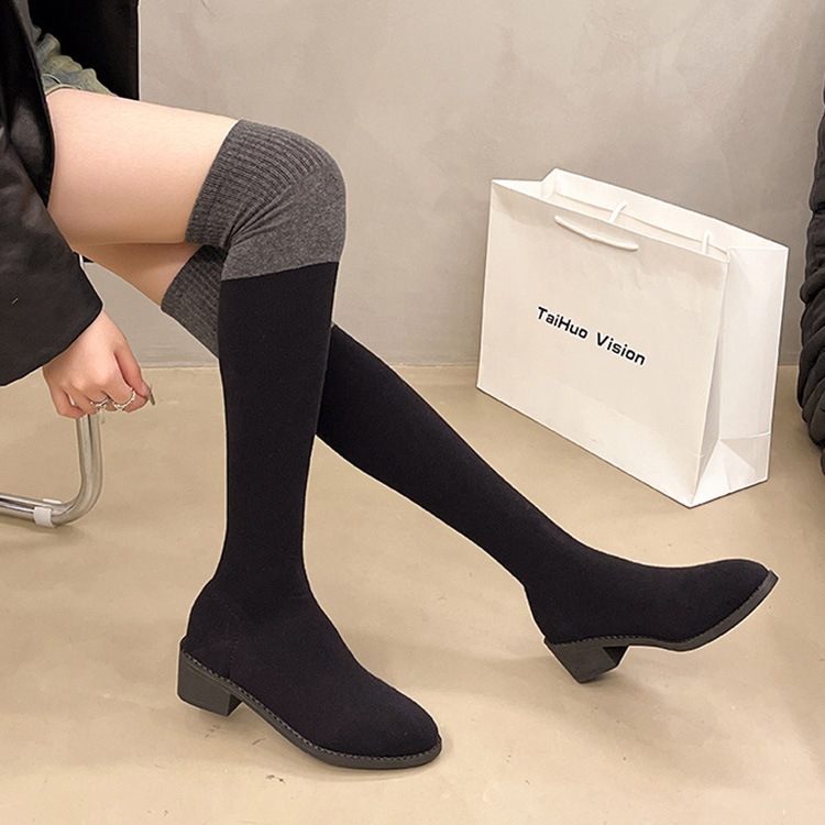 ソックスブーツ ブーツ レディース ニーハイブーツ ストレッチ ブーツ 美脚 チャンキーヒール 膝丈 4.5cmヒール ハイカット 韓国風 シューズ 靴 太ヒール カジュアル おしゃれ