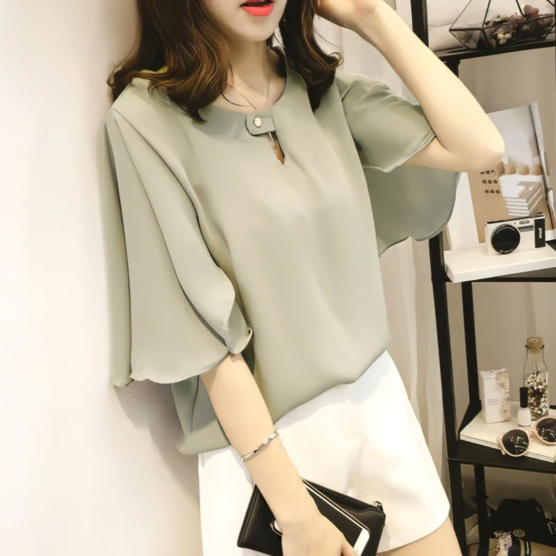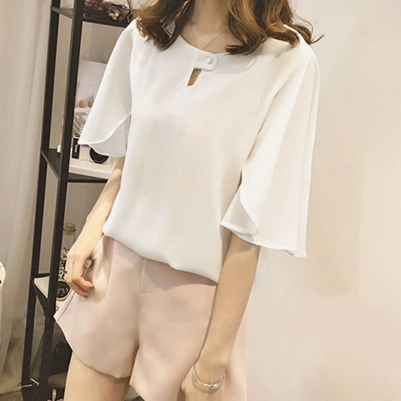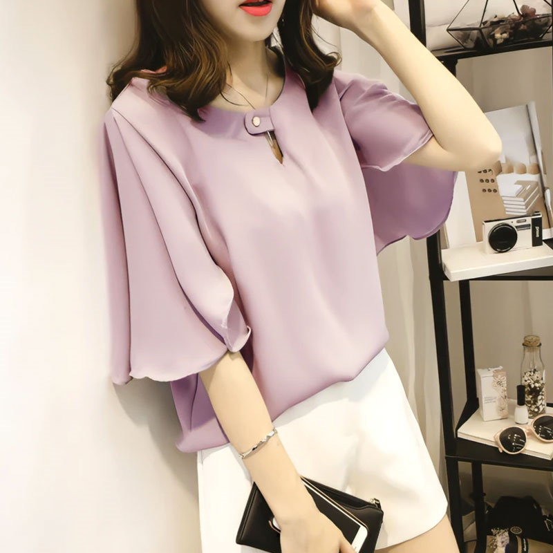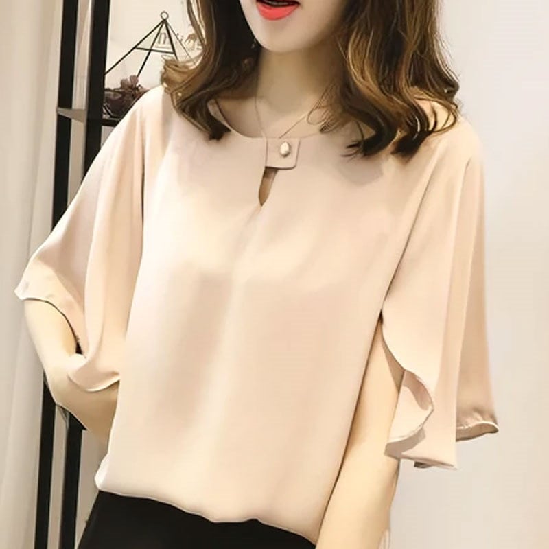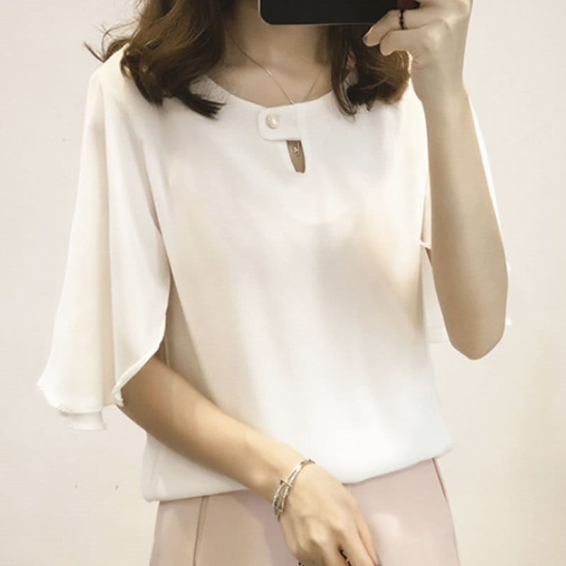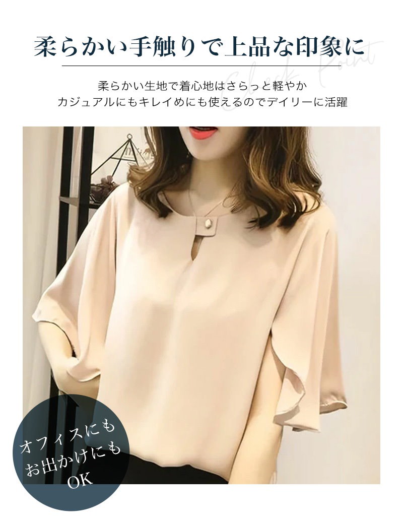 綺麗め可愛いお洒落ブラウス レディース フレアスリーブ 半袖 シフォンブラウスTシャツカットソートップス 体型カバープルオーバー 通勤通学オフィスお出掛け 着回し 韓国ファッション