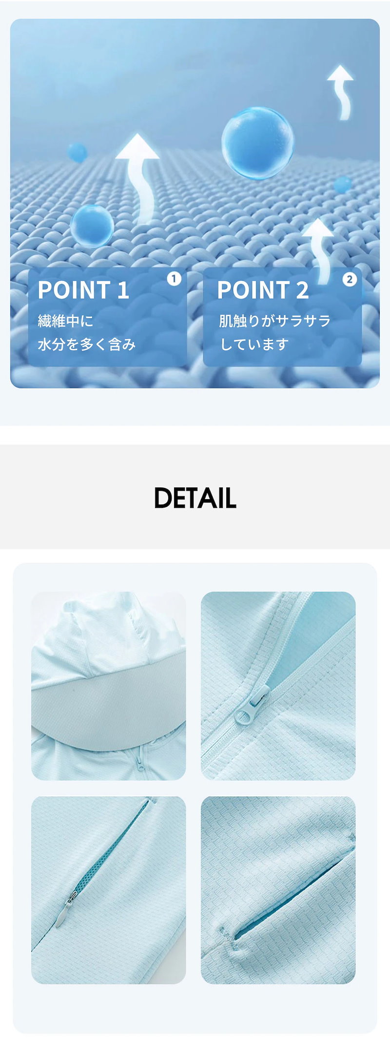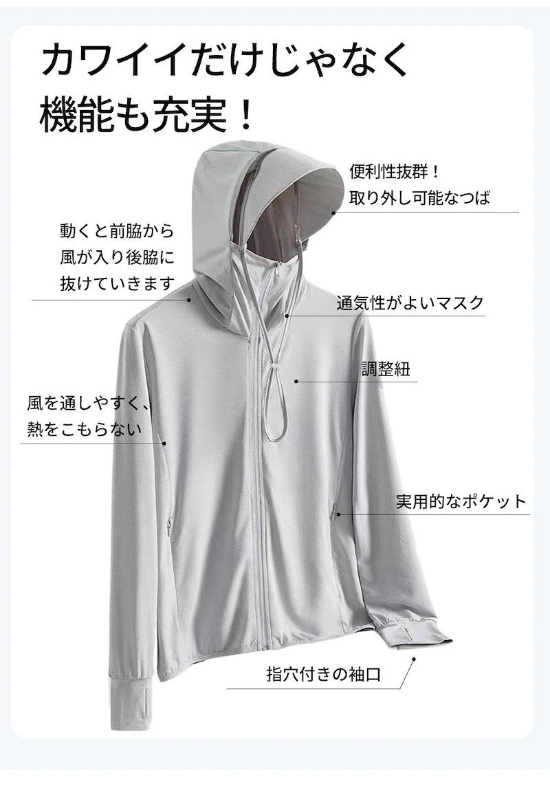 追加料金なしUV パーカー 着るだけ-7℃ 冷感 レディース 長袖 ラッシュガード UVカット アウター メッシュ 素材 通気口 指穴 つば