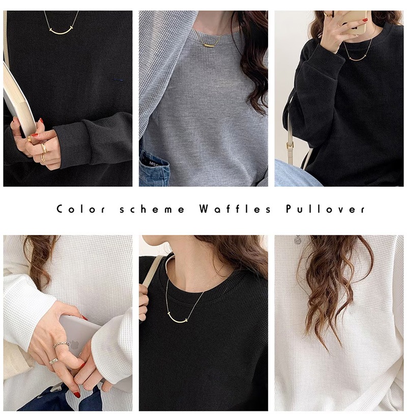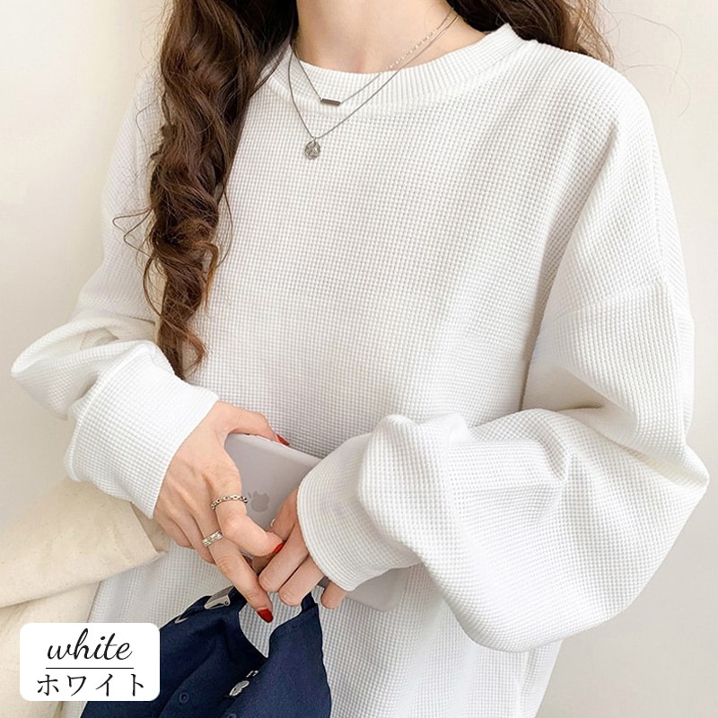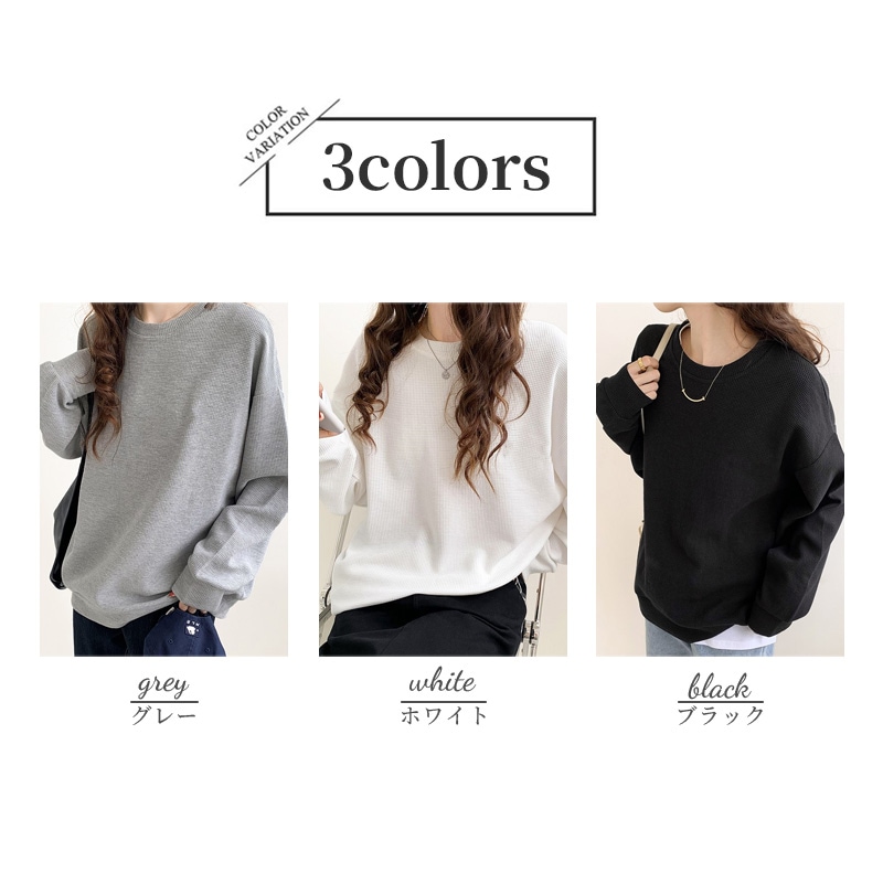 ラウンドネック 長袖 メロウ フリル ボーダー ニット トップス カットソー ツートーン メロー おしゃれ 無地 かわいい シンプルモノトーン 春 秋 冬
