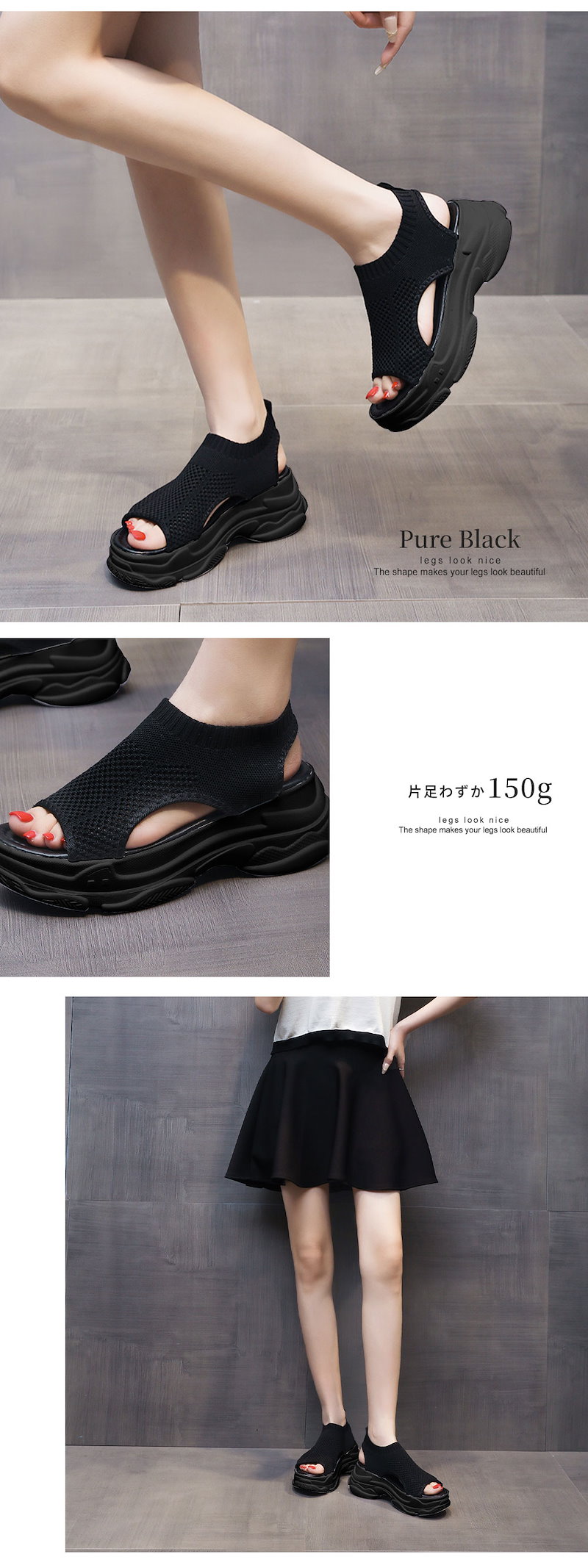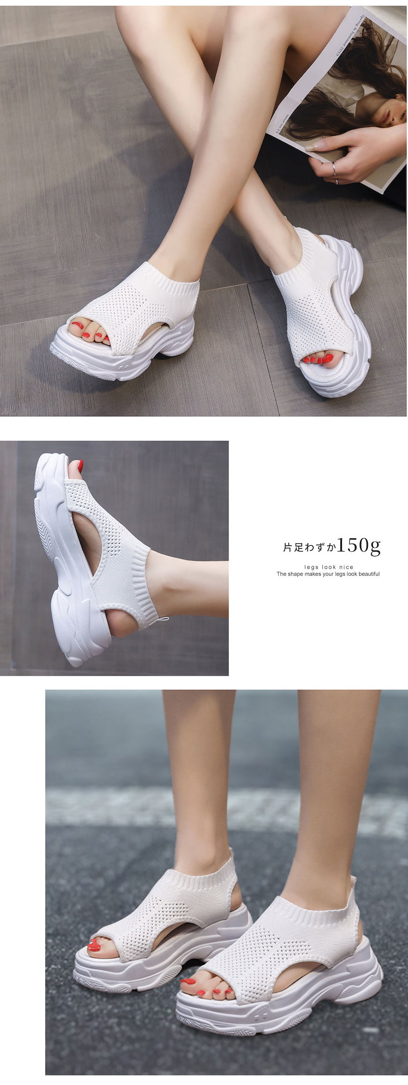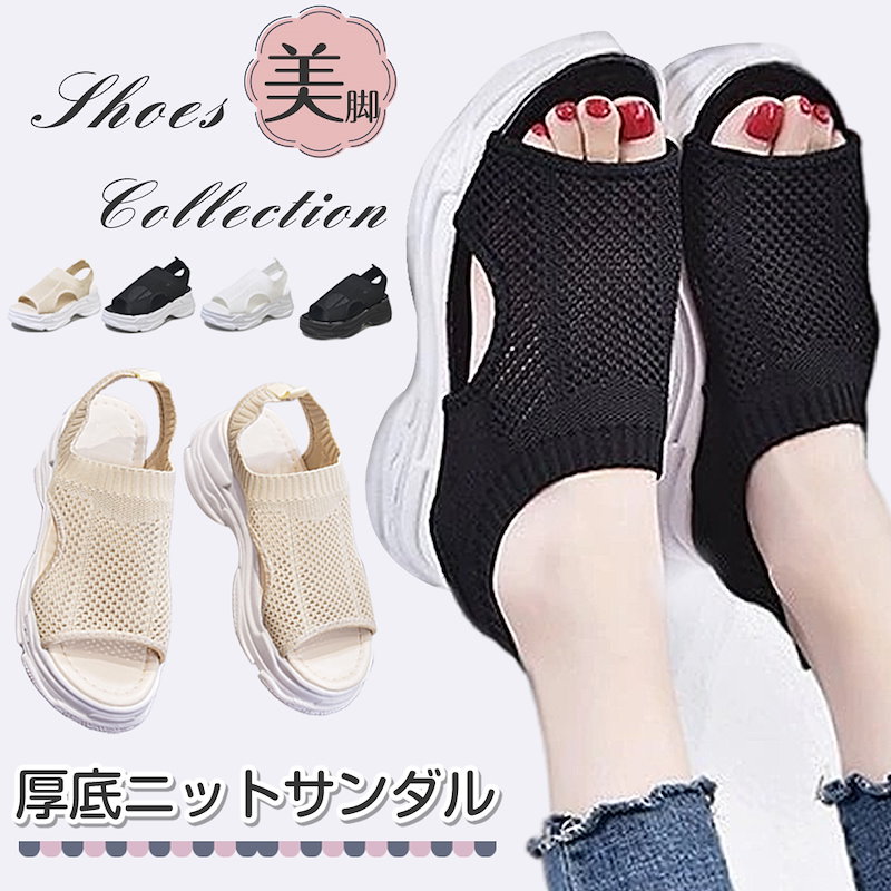 新作追加 厚底 美脚 ニットサンダル最旬トレンドスタイル スニーカー シューズ 靴 厚底 靴 疲れない サンダル