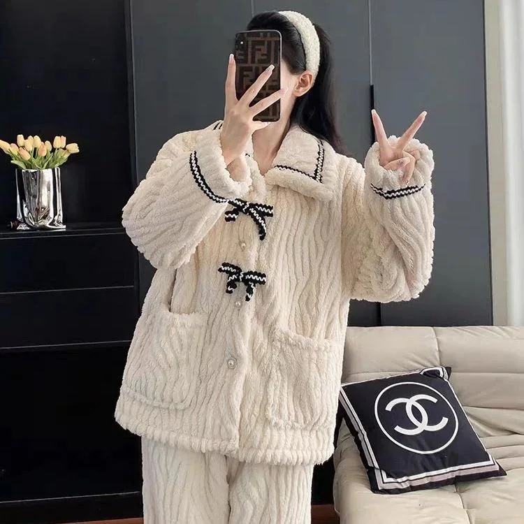 パジャマ 韓国ファッション 裹起毛 男女同じカップル学生 部屋着秋 冬パジャマ2点セット かわいい ルームウェア 保温 上下セットレディース 部屋着 防寒 ルームウェア セットアップ 保温