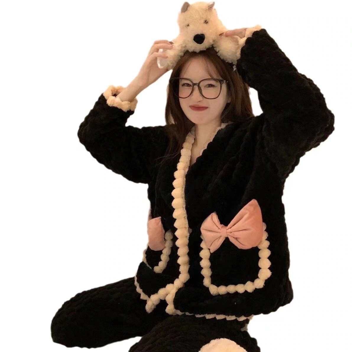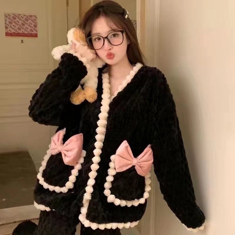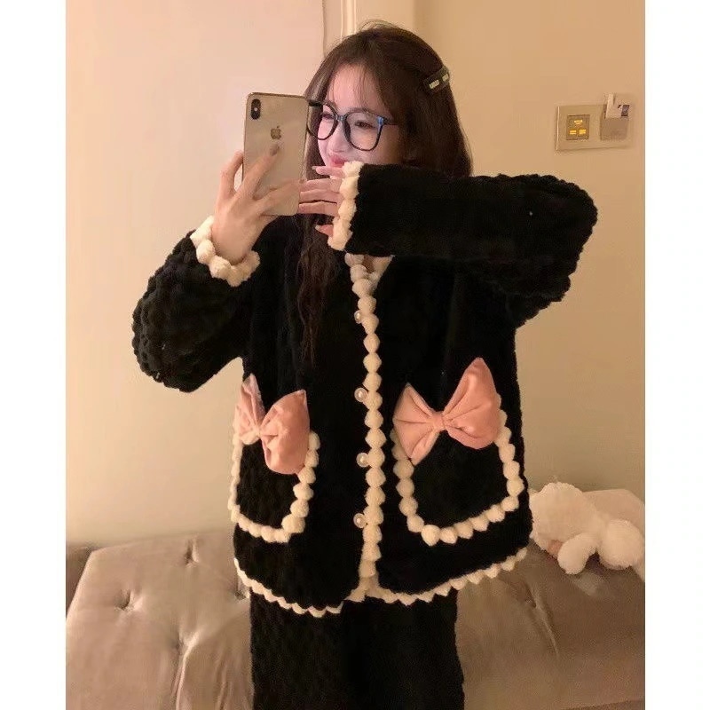 パジャマ 韓国ファッション 裹起毛男女同じカップル学生 部屋着 秋 冬パジャマ2点セット かわいい ルームウェア 保温 上下セットレディース 部屋着 防寒 ルームウェア セットアップ 保温