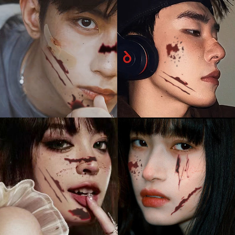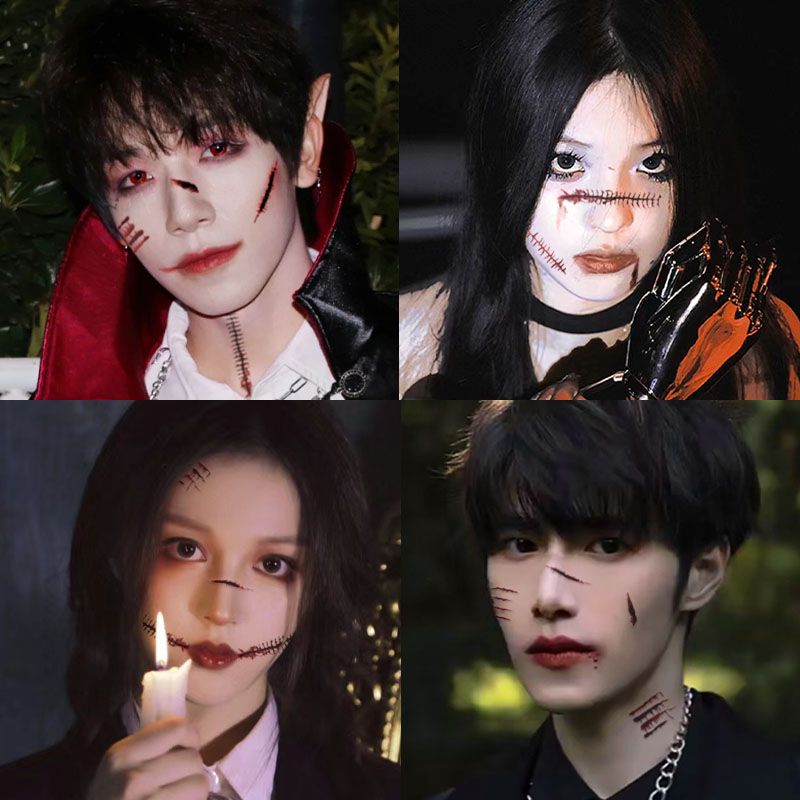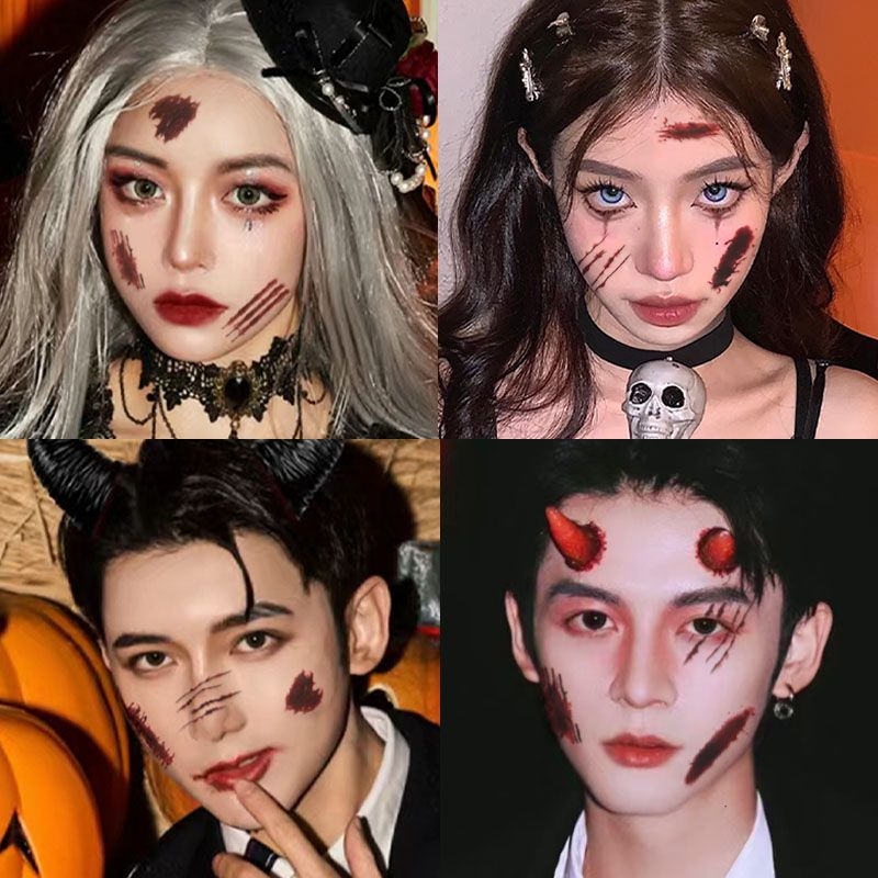 ハロウィンタトゥーシール 防水メイク10枚セット ハロウィン コスプレ クールメイク パーティーバーメイクフェイスシート 仮装 男女兼用 ハロウィン