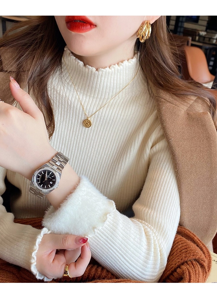 裏起毛5TYPE ニットセーター保温 暖かい 上質 リブ ニット トップス レディース タイト シルエット ストレッチ カットソー 無地 秋冬 トップス
