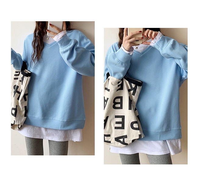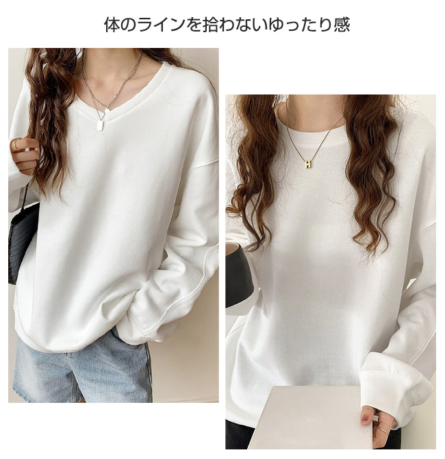 トレーナー レディース スウェット 長袖 シンプル トップス プルオーバー 秋 春 スポーツ 着痩せ 体型カバー クルーネック Vネック カットソー レイヤード 重ね着