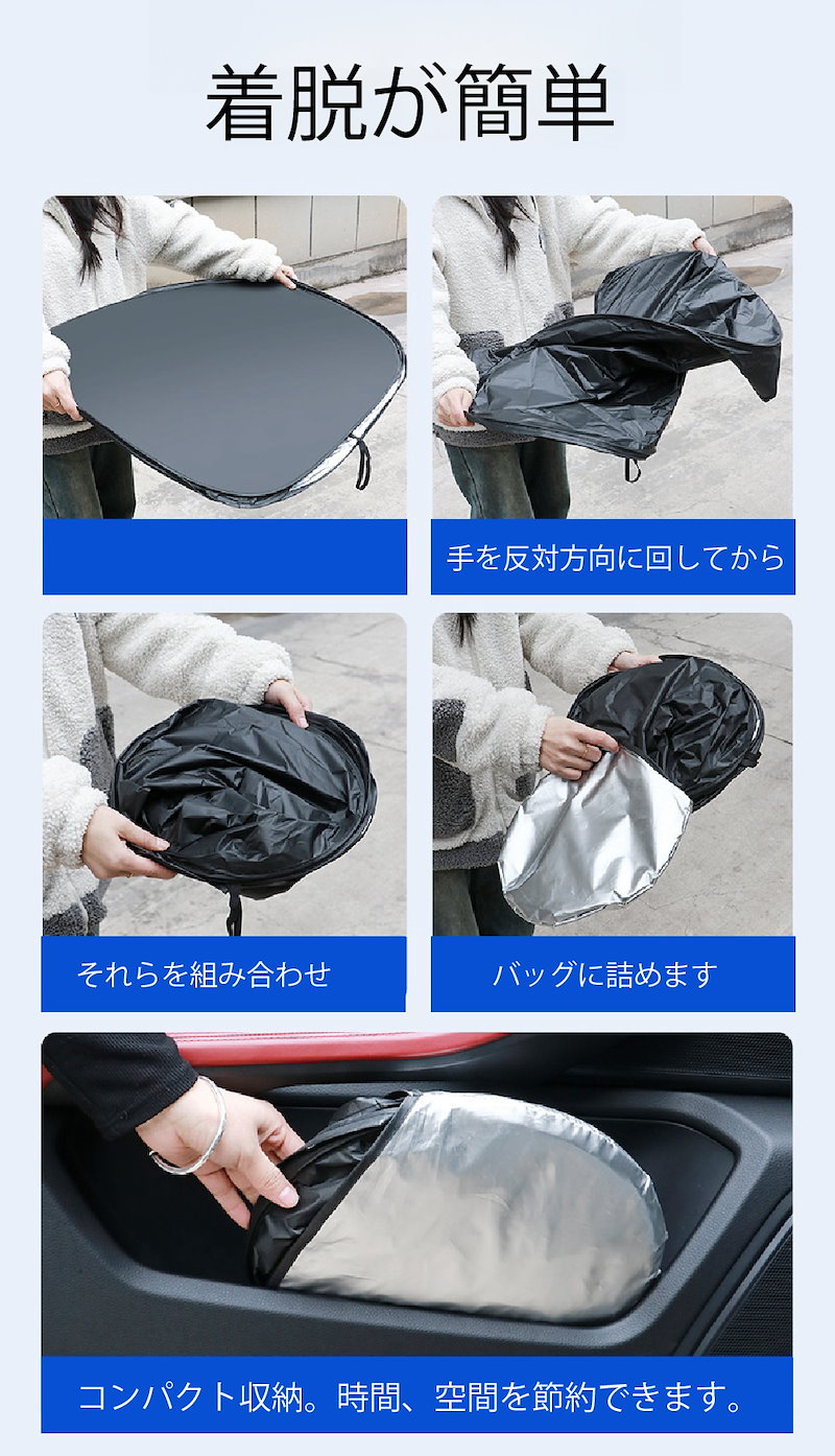 MとLサイズ選べる フロントサンシェード 車用遮光マジカルシェード 断熱 日よけ 吸盤なし折りたたみ カーサンシェード 軽量 コンパクト 収納袋付き